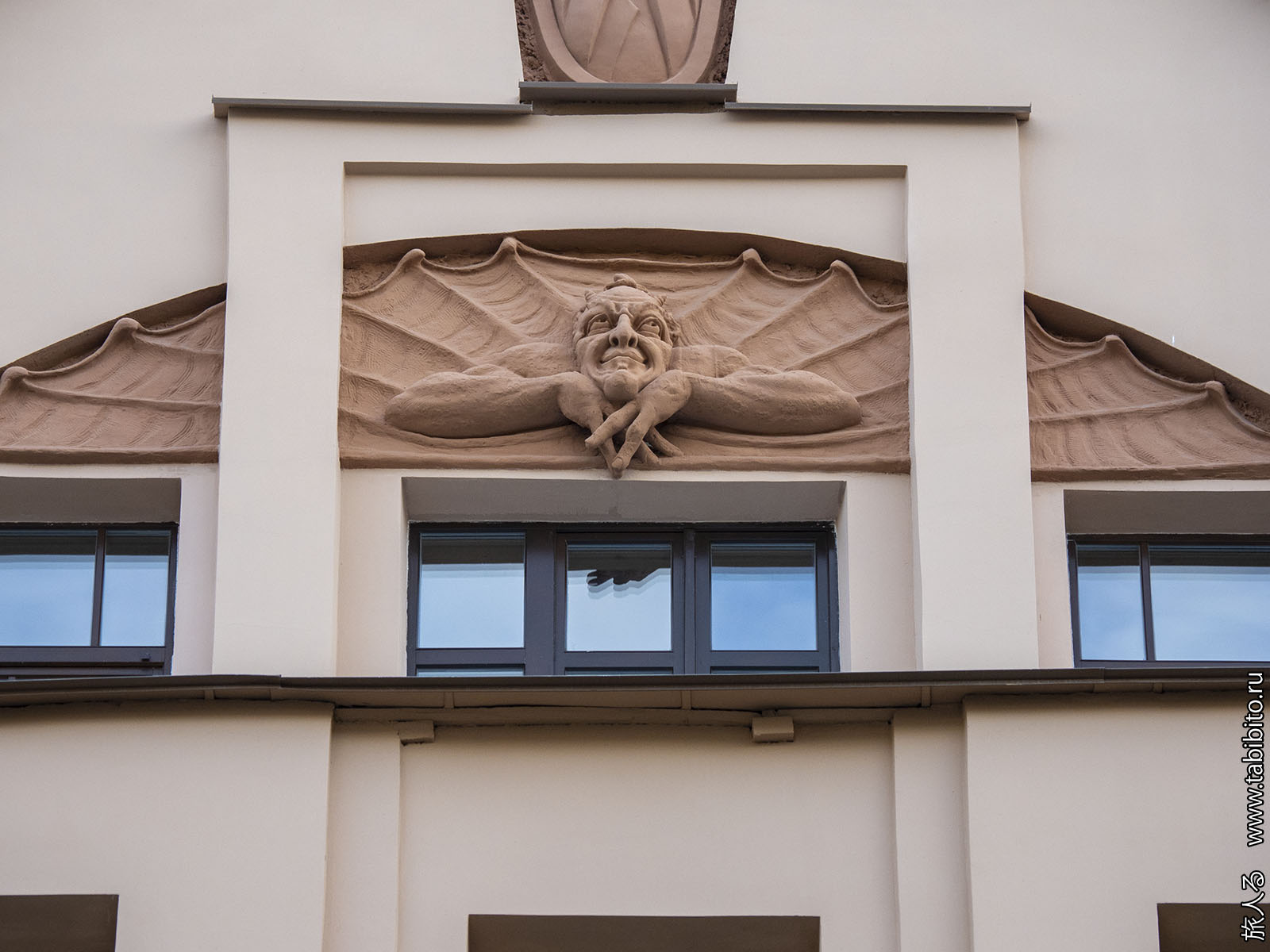 Лахтинская улица. Недавно Восстановленный Мефистофель на доходном доме А. Л. Лишневского.