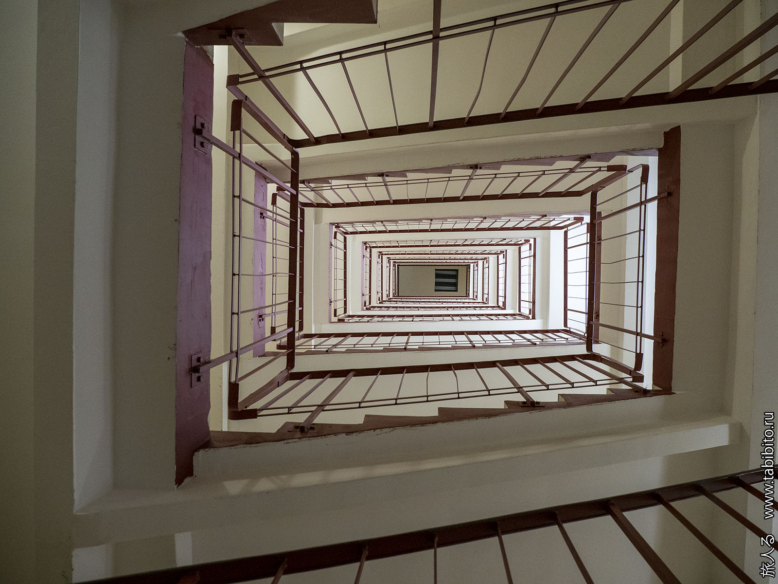Крыша стилобата, как и положено человейнику, засыпана мусором.