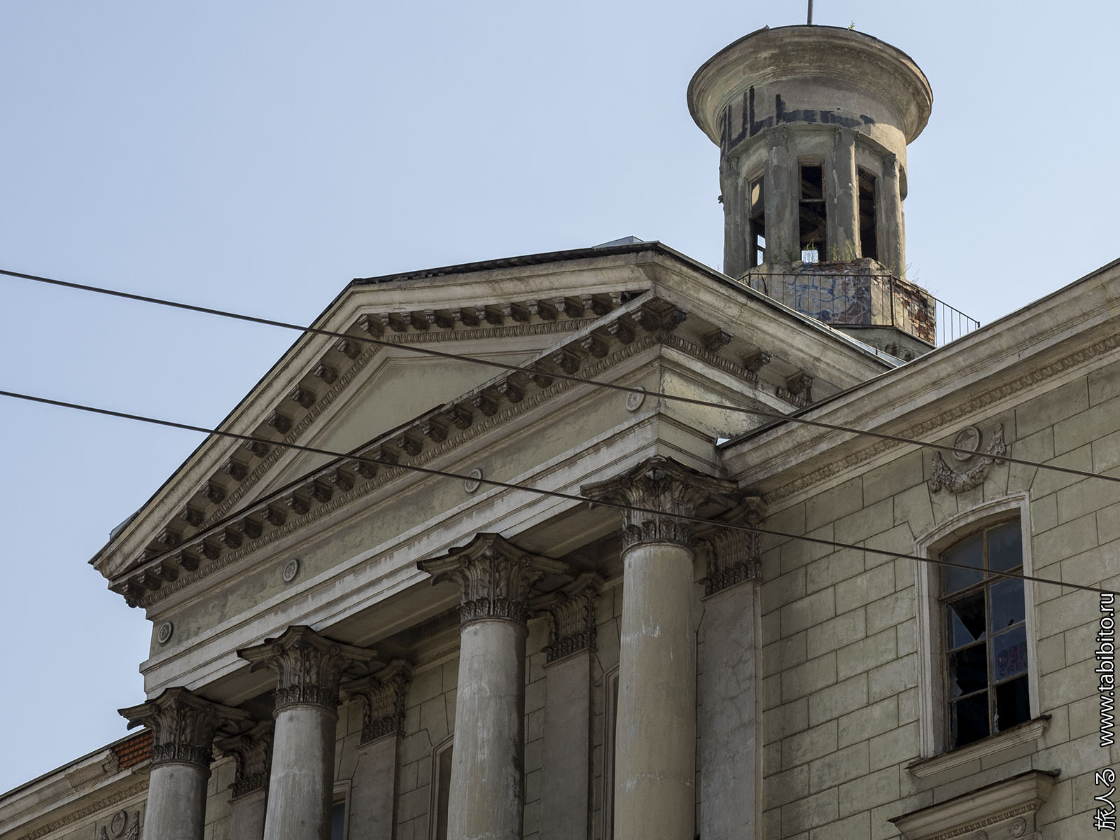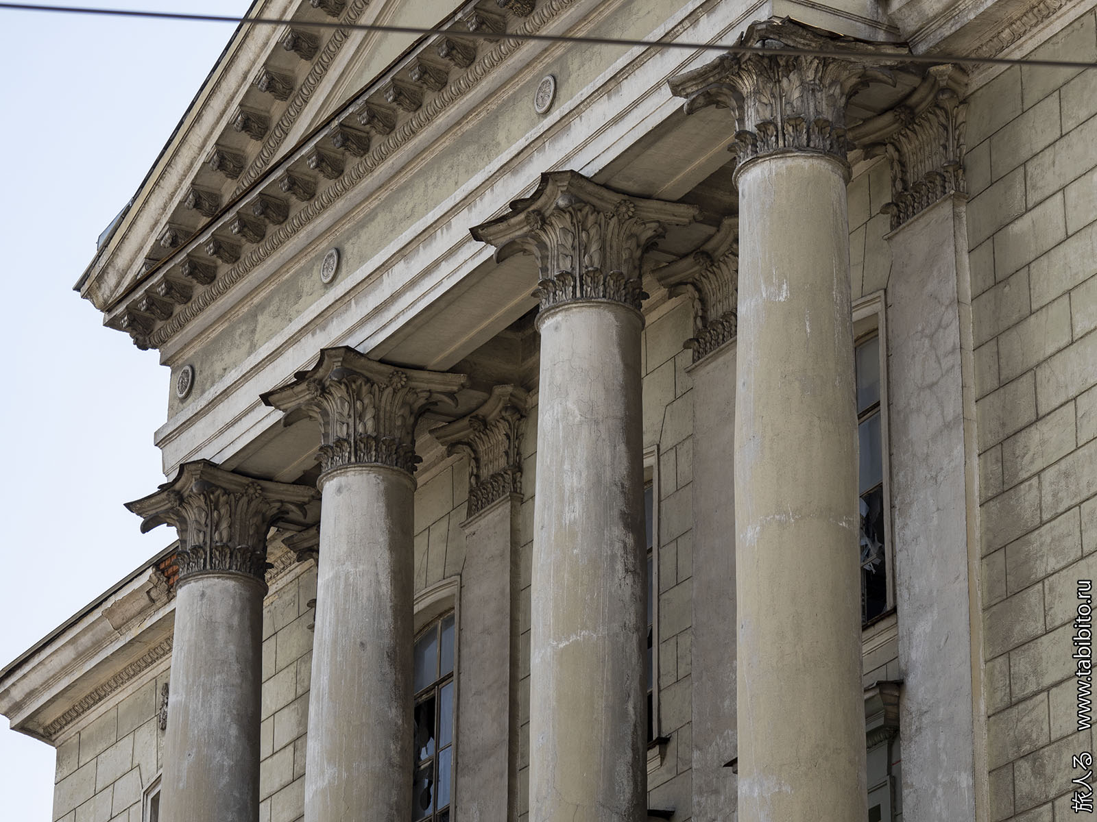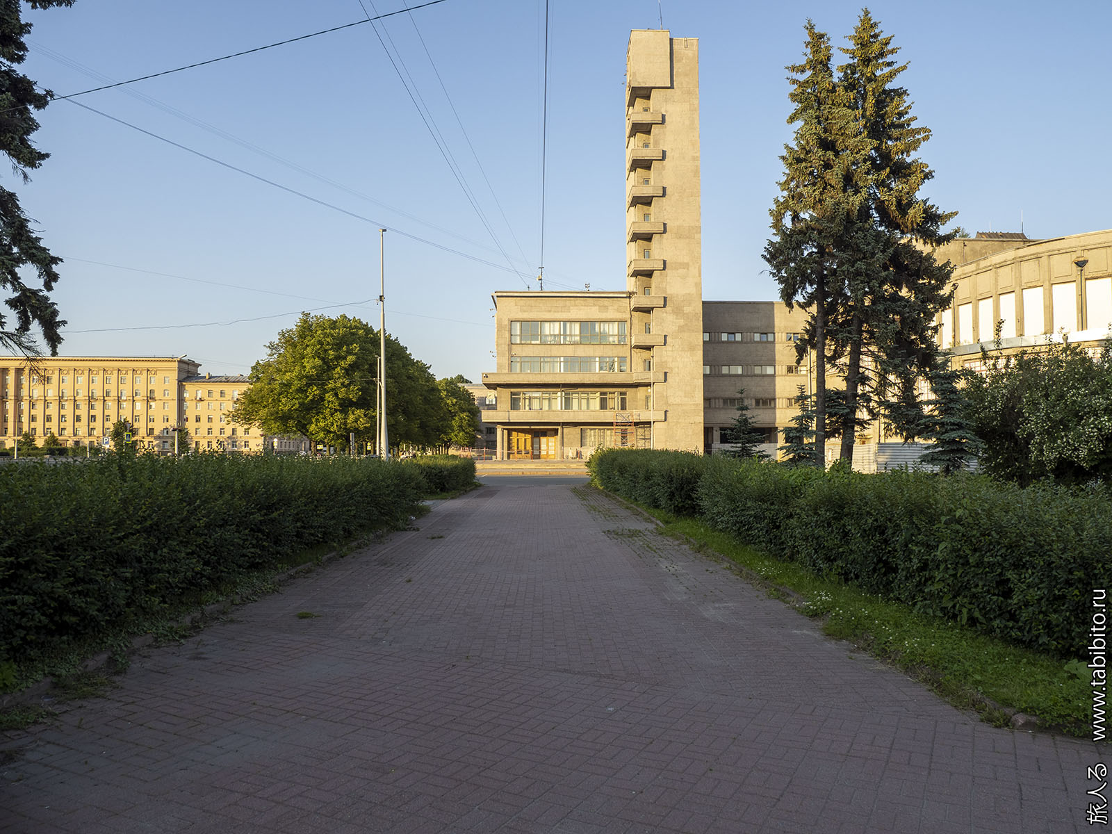 И, наконец, грандиозное здание Кировского райсовета (1930-1935), построенное по проекту Ноя Абрамовича Троцкого. Напомню, что он не имеет отношения к другому Троцкому, который вовсе не Троцкий, а Бронштейн. И, кроме того, именно Ной Троцкий построил поселок для рабочих в Чагоде.