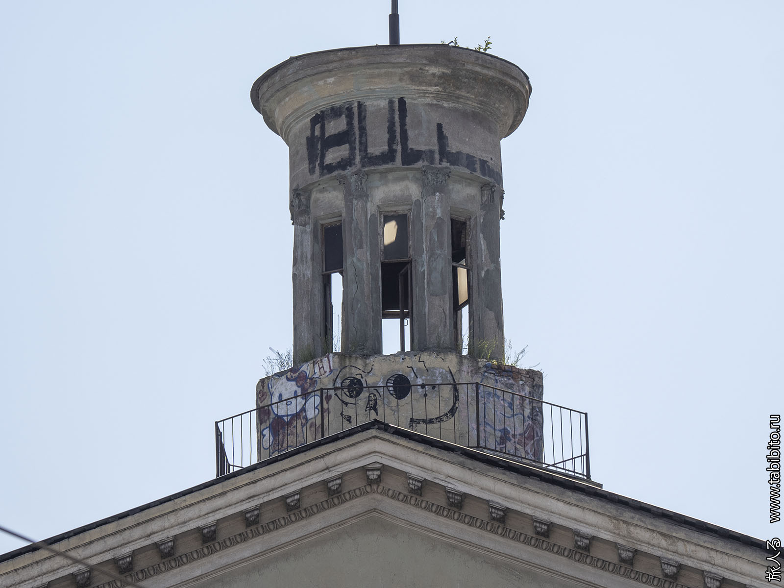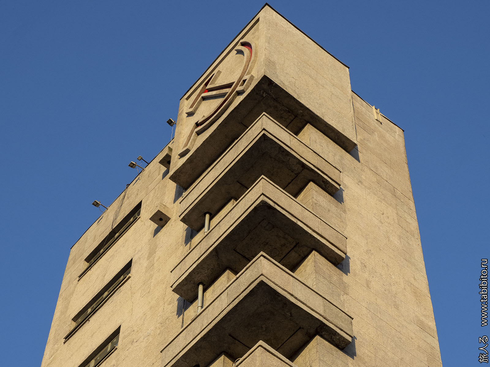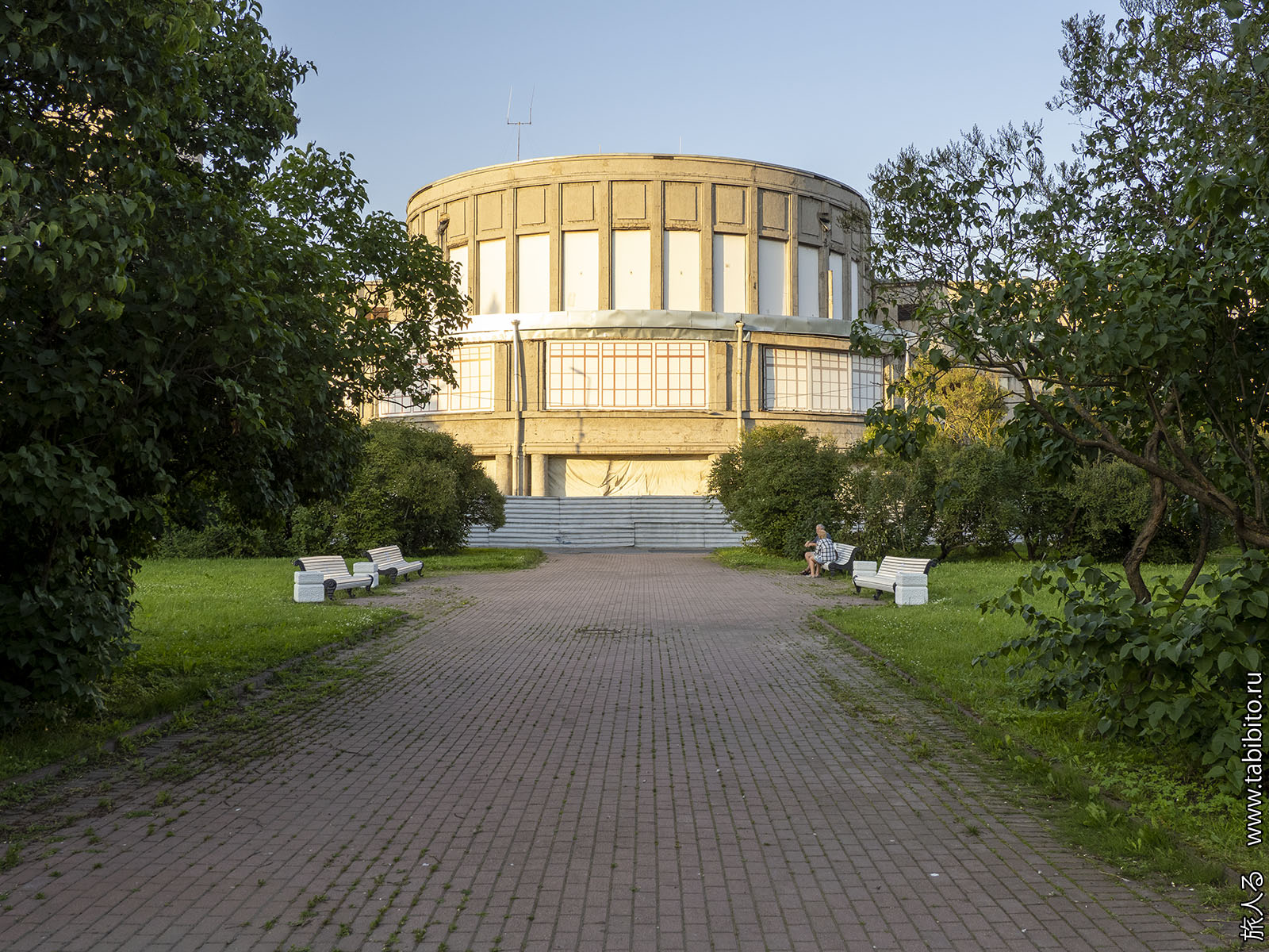 В полукруглой части здания размещается кинотеатр «Прогресс», который закрыт уже больше 15 лет.