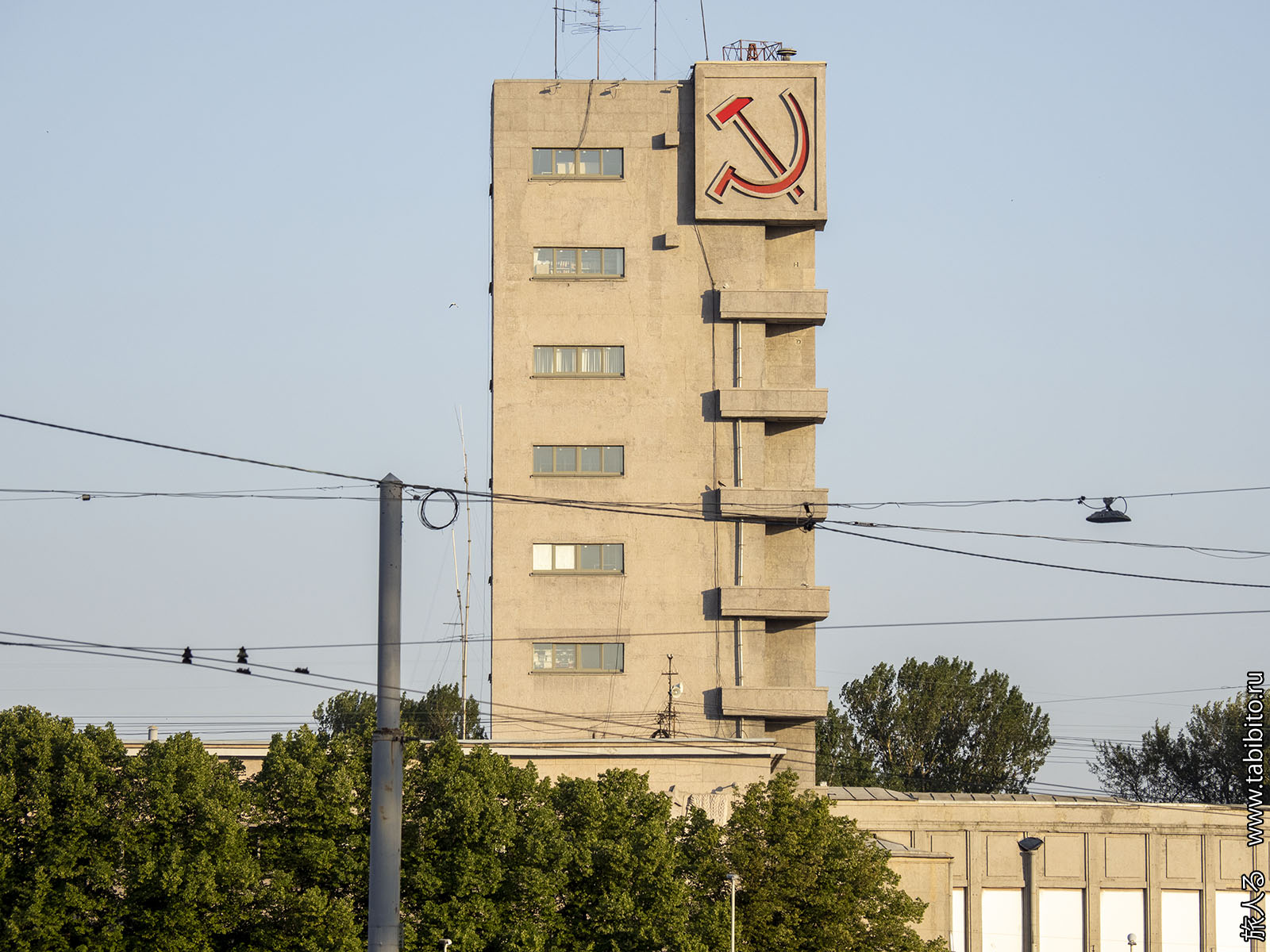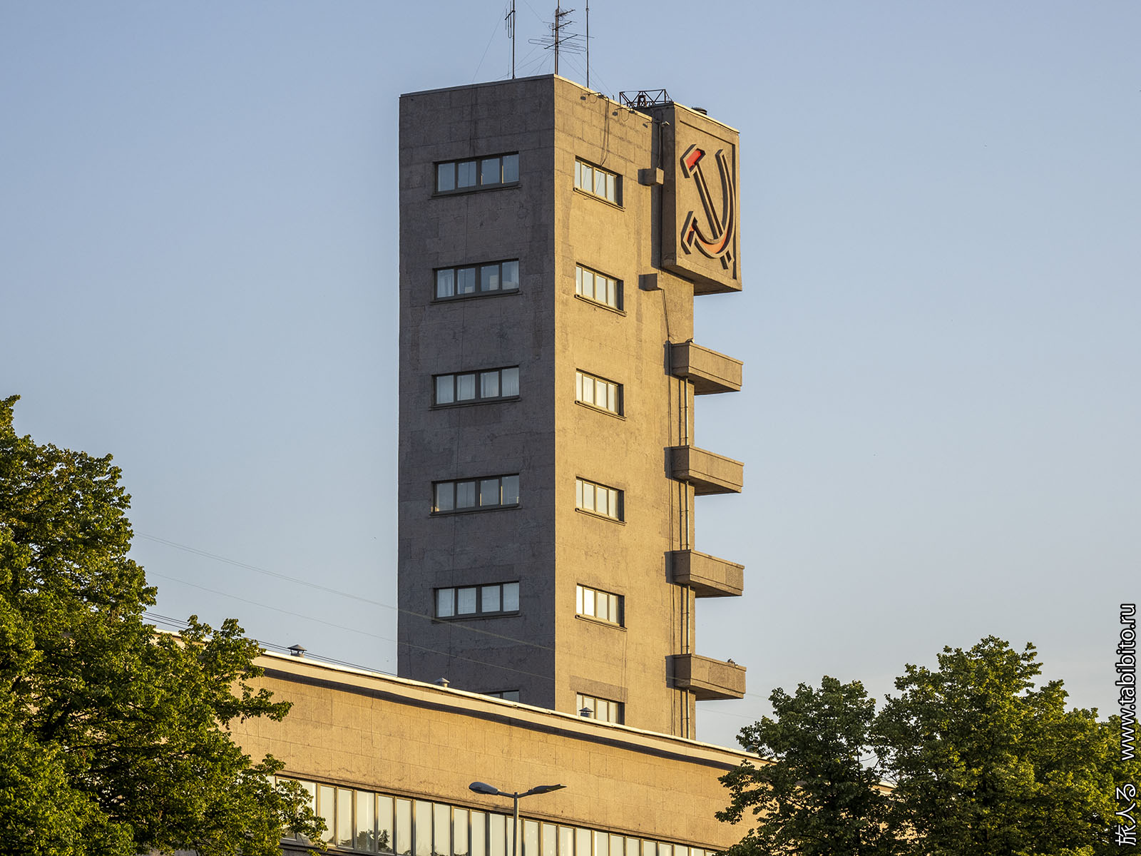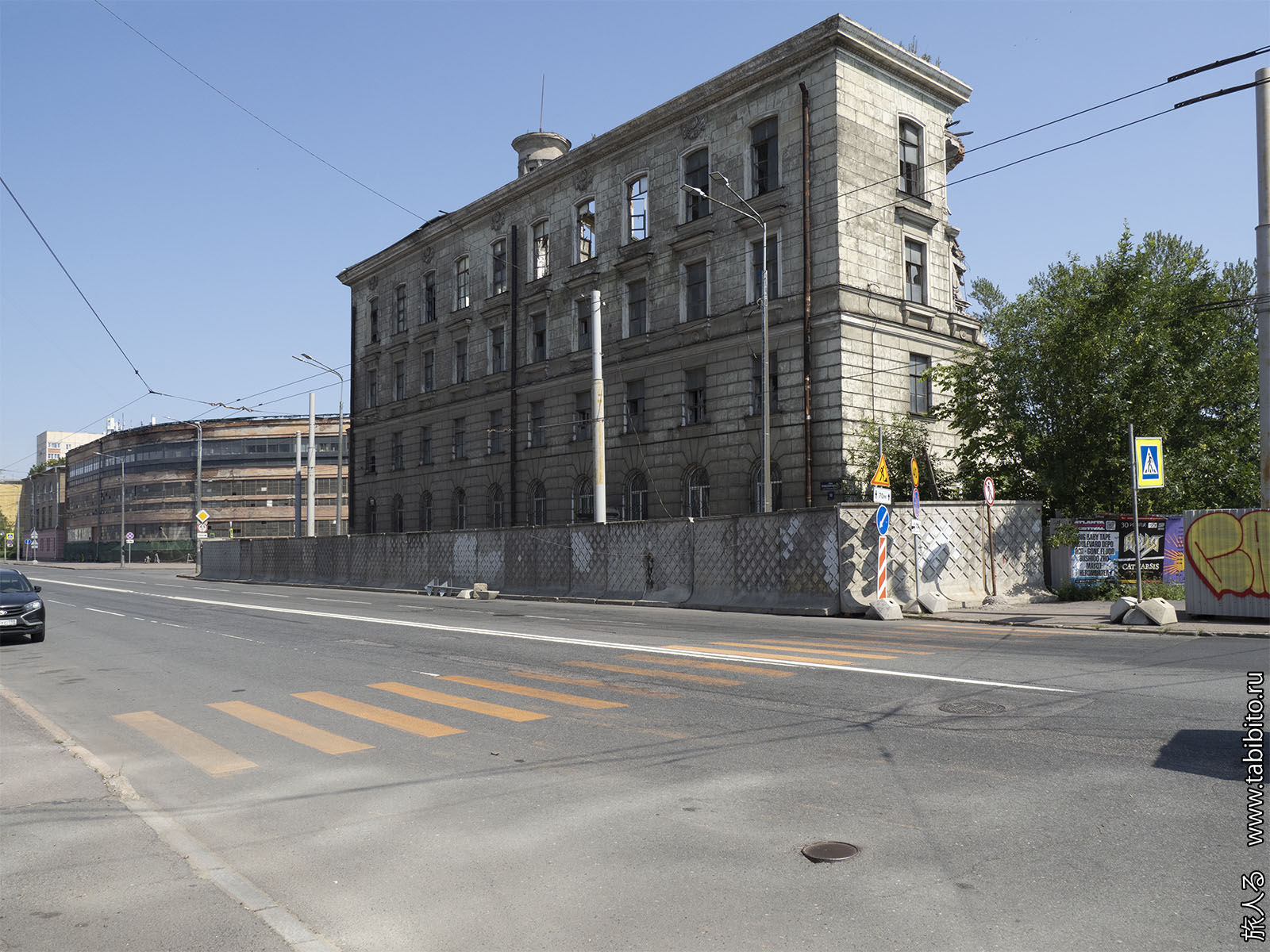 Напротив здания НИЦ РвиА — бывший цех металлоизделий завода «Спорт» (1965). Настолько уродлив, что стоило бы тоже признать памятником.