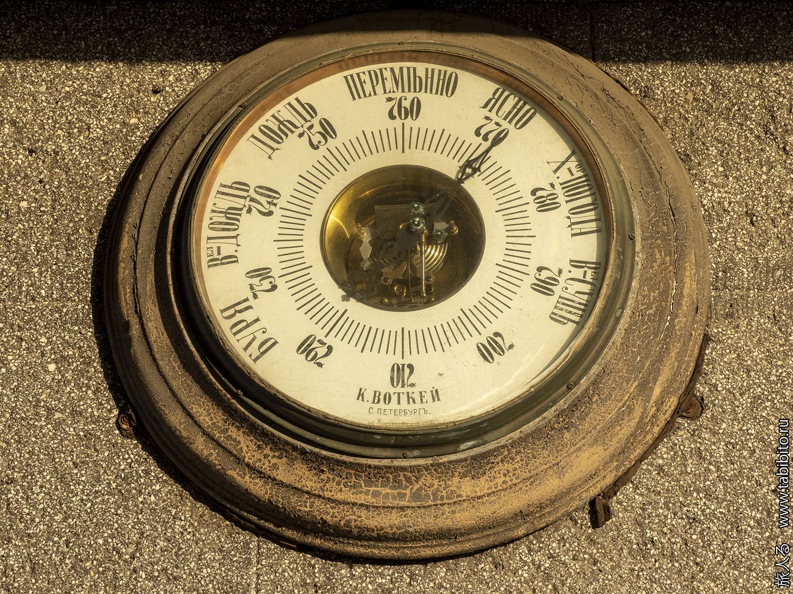 Дореволюционный барометр фирмы Воткея на фасаде.