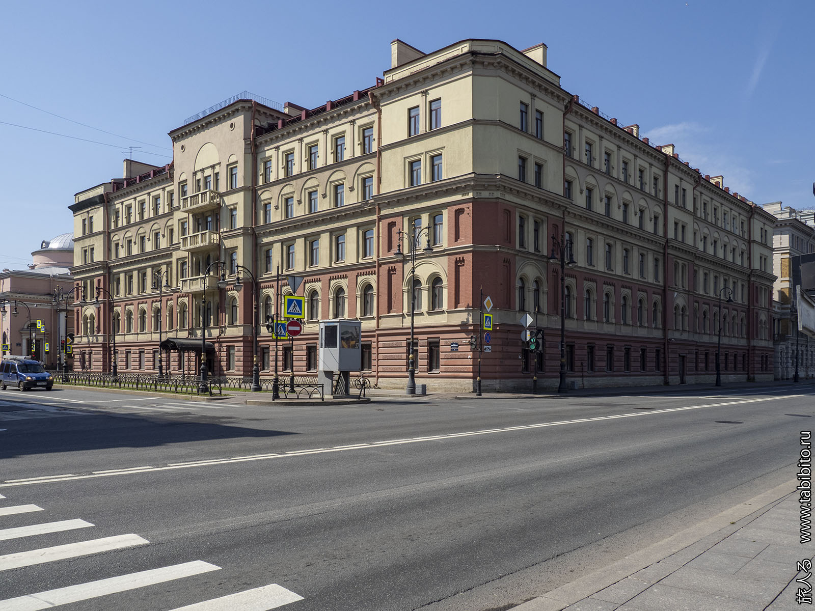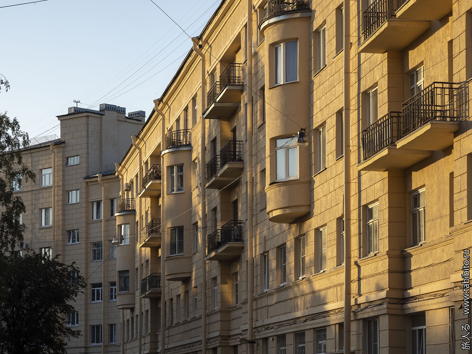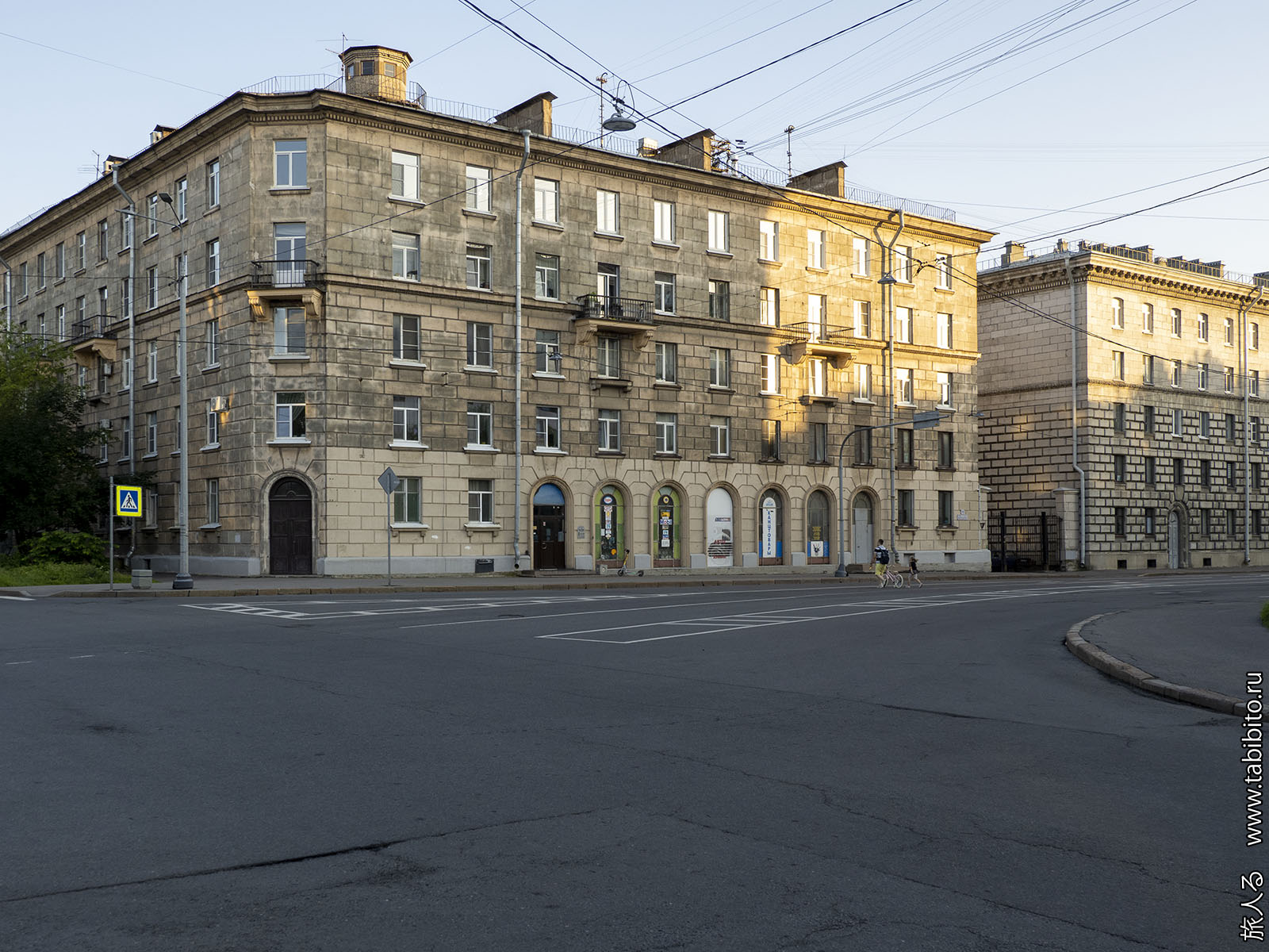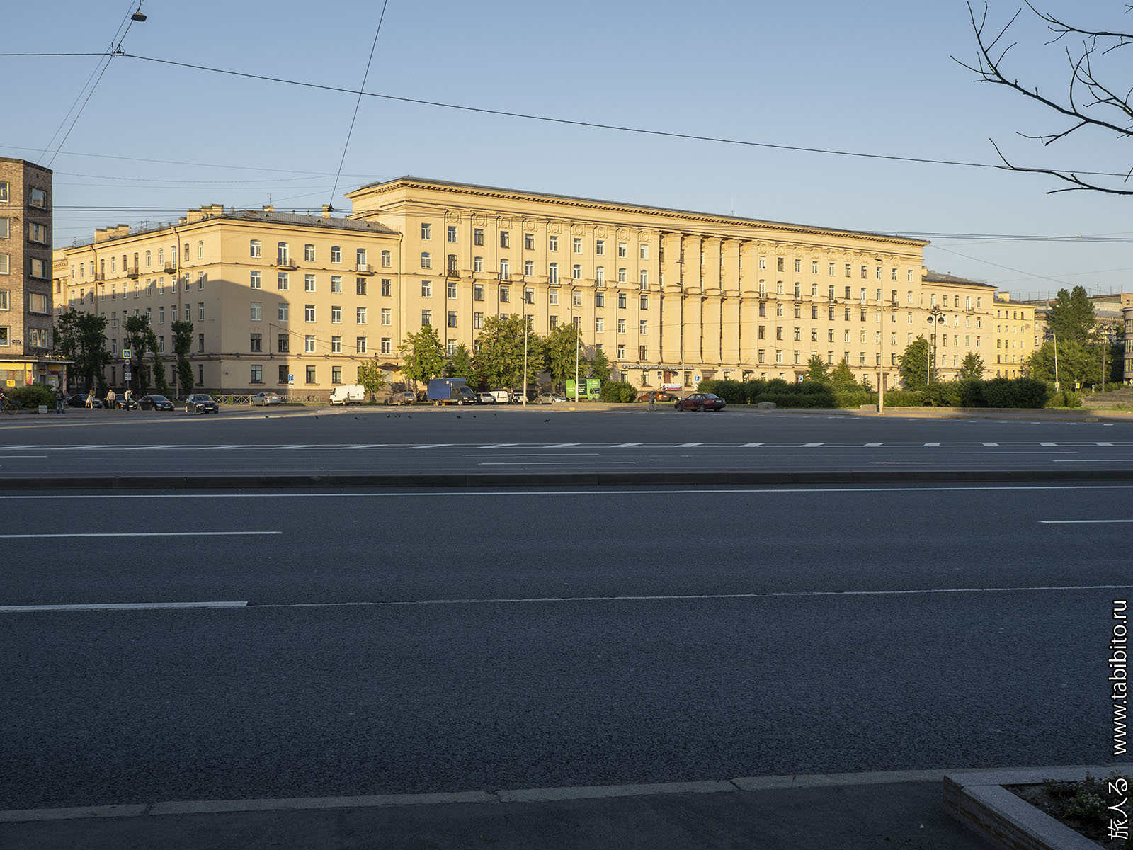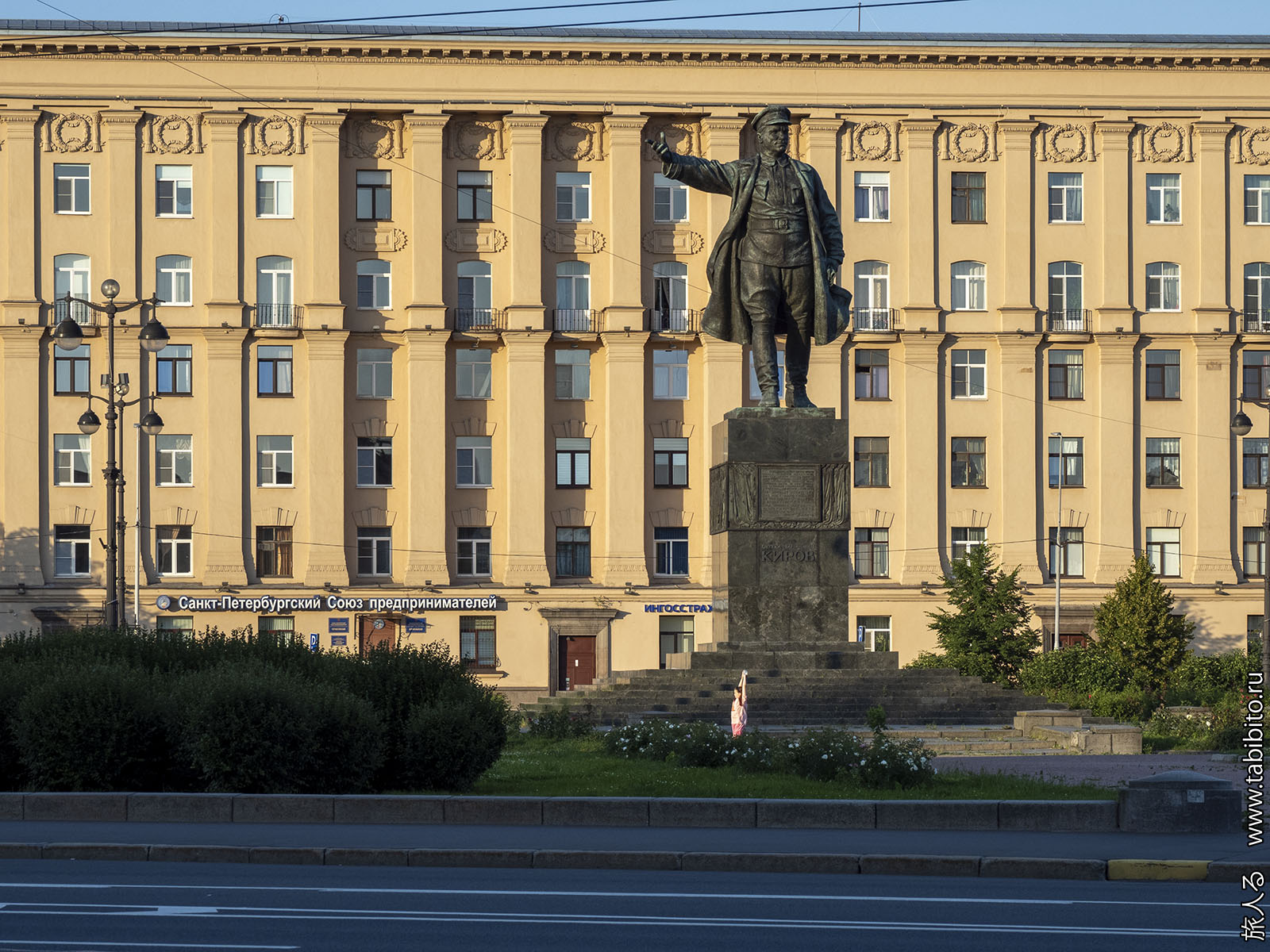 Проспект Стачек, 16, с памятником Кирову. Кажется, что это какое-то административное здание, но на самом деле — жилой дом.