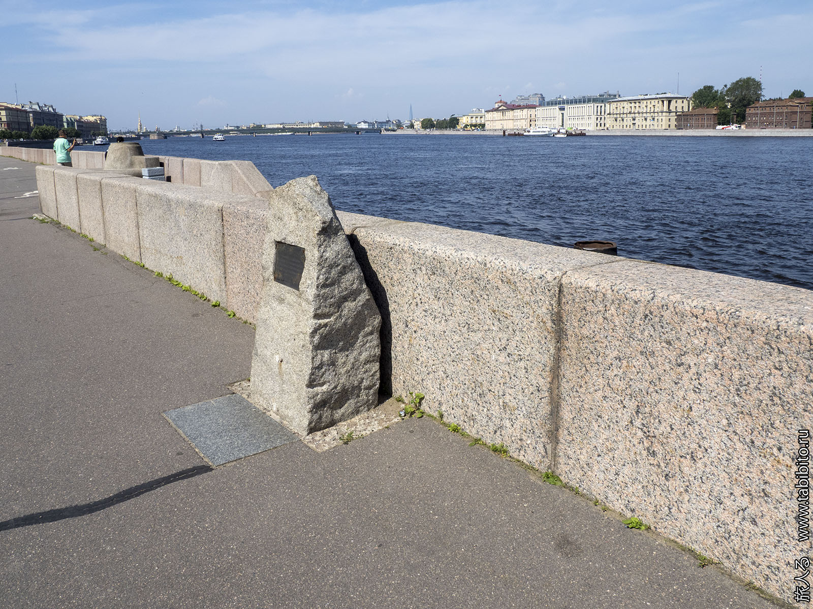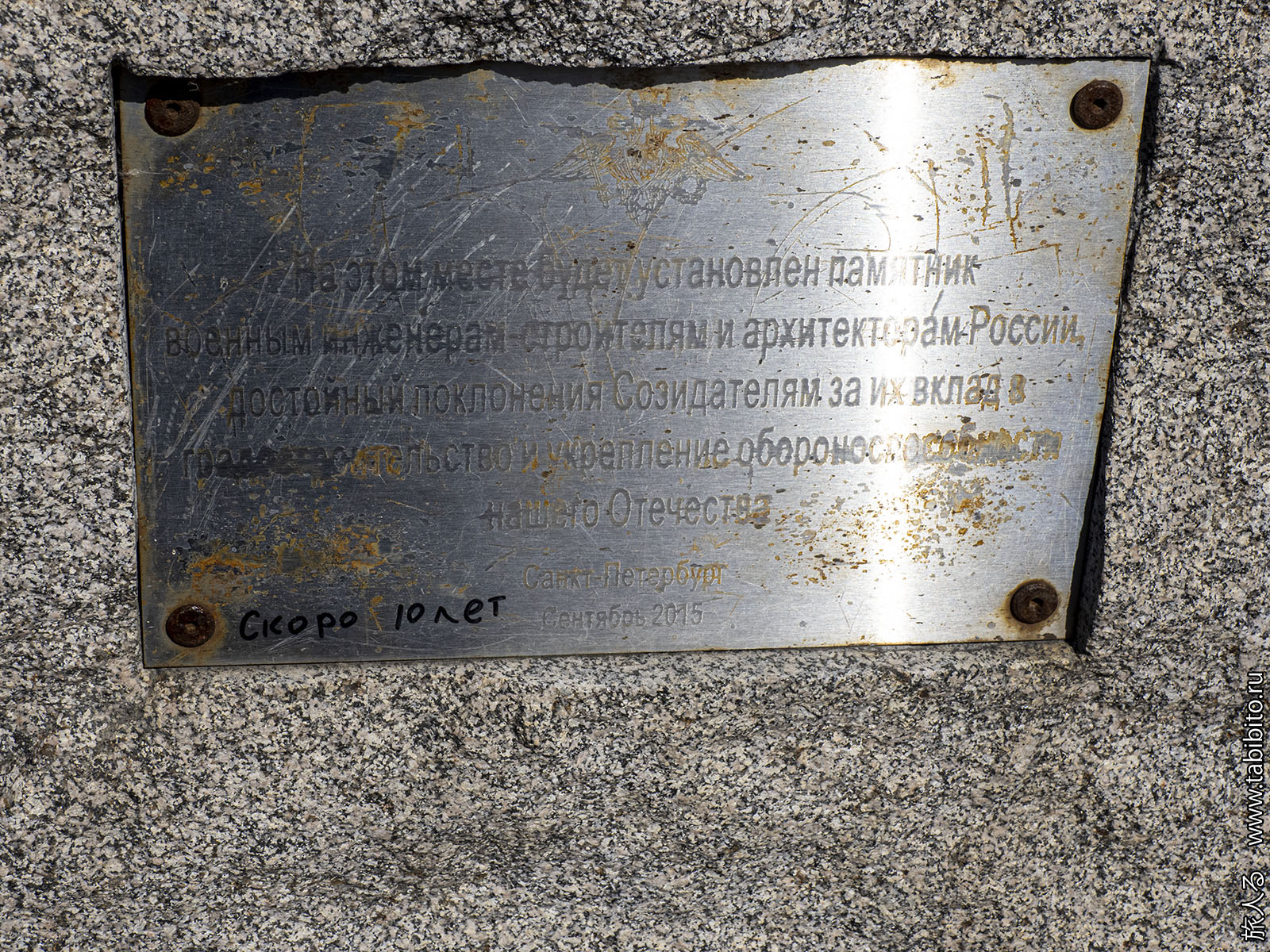 У следующего причала закладной камень памятника военным инженерам. Кто-то возмущен, что памятник никак не поставят.