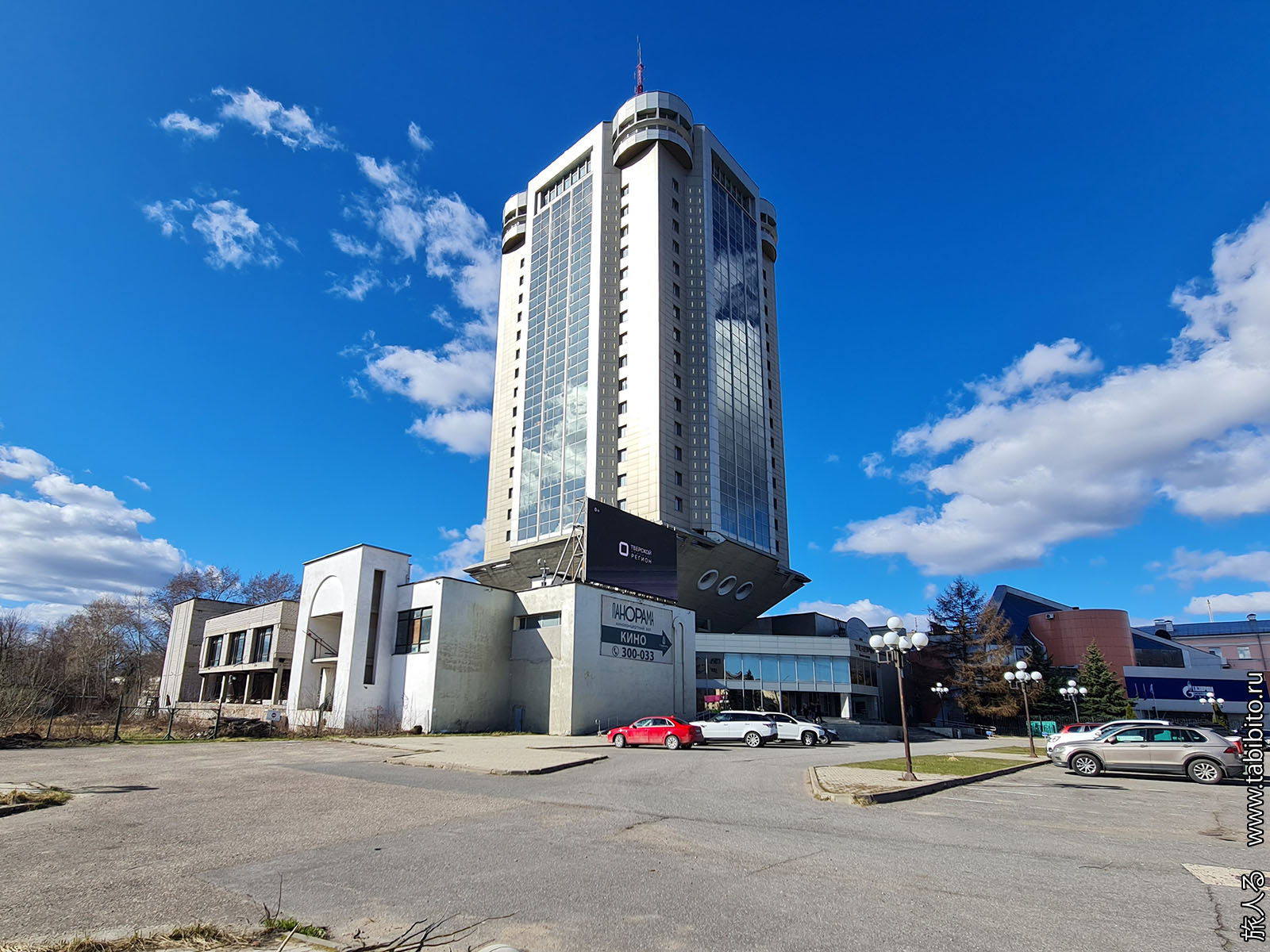 В 1977 году в преддверии московской Олимпиады в центре Твери задумали построить 77-метровую гостиницу «Тверская». Вовремя построить ее не удалось, поэтому она больше 30 лет стояла заброшенной. За форму местные жители прозвали здание «рюмкой». В 2013 году здание доделали, но под отель выделили в нем лишь несколько этажей. Остальное отдали под офисы. Что характерно, часть стилобата до сих пор заброшена.