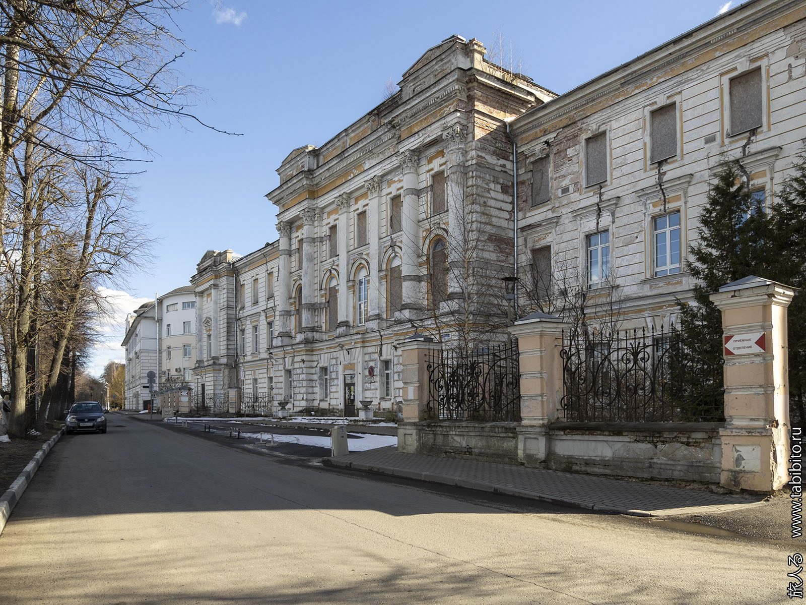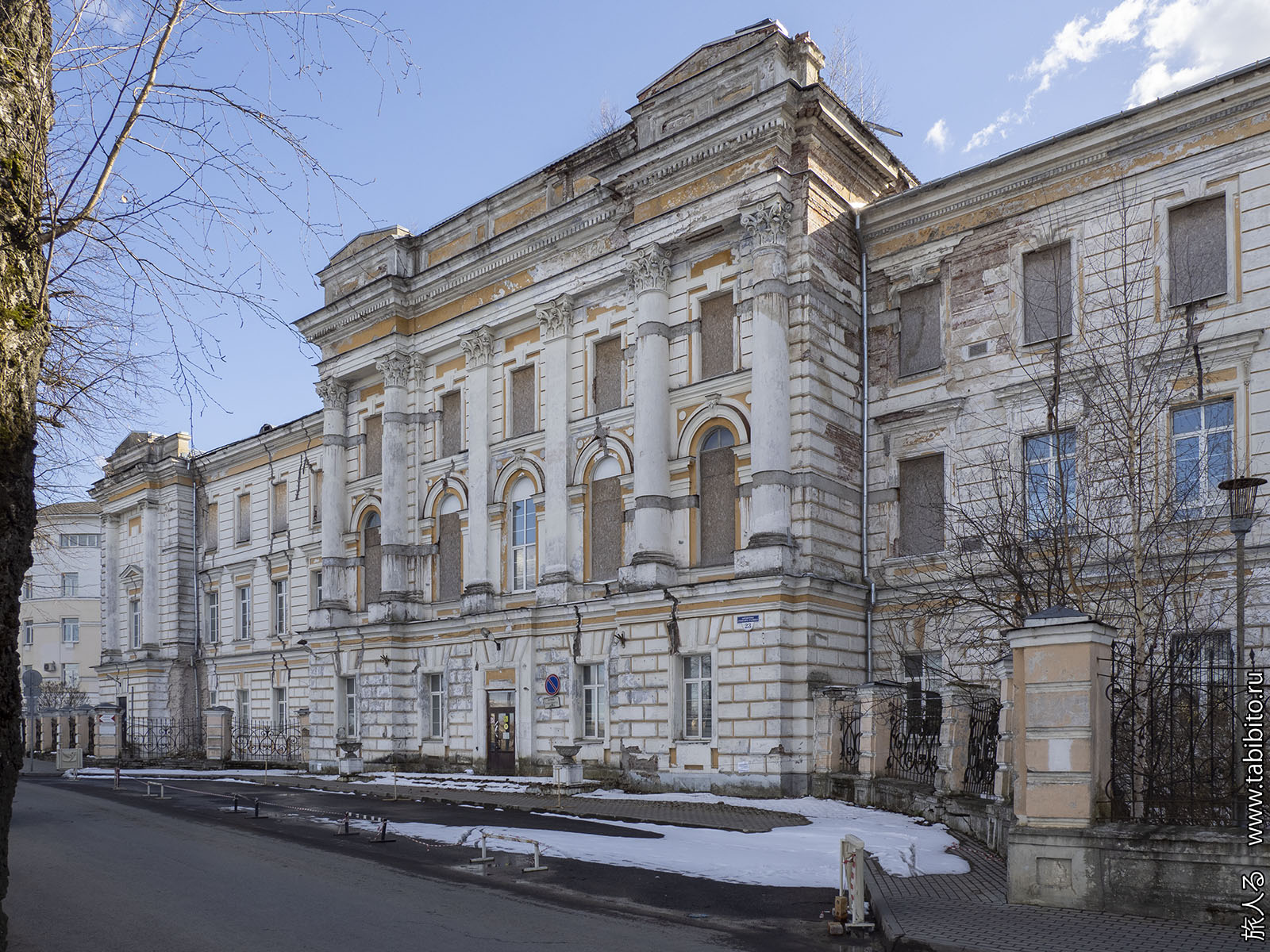 Заброшенная губернская больница в парке Воксал. Парк этот был открыт в 1770-х годах и получил название от лондонского сада развлечений — Воксхолла и созданных по его подобию московских «воксалов» в Кусково, Нескучном, Лефортово и других локациях. При открытии Царскосельской железной дороги в 1837 году, ее станция в Павловске была совмещена с таким же развлекательным залом, как в Воксхолле, поэтому название «воксал» озвончилось до «вокзала». Так до недавнего времени (скажем «спасибо» Собянину) называли все большие капитальные пассажирские станционные строения, хотя развлекательные функции из них пропали. Тверской же Воксал на каком-то этапе разорился и в 1867 году тут открыли больницу, которую забросили в 2007 году. Сейчас вроде как парк подо что-то реконструируют, пройти внутрь нельзя.