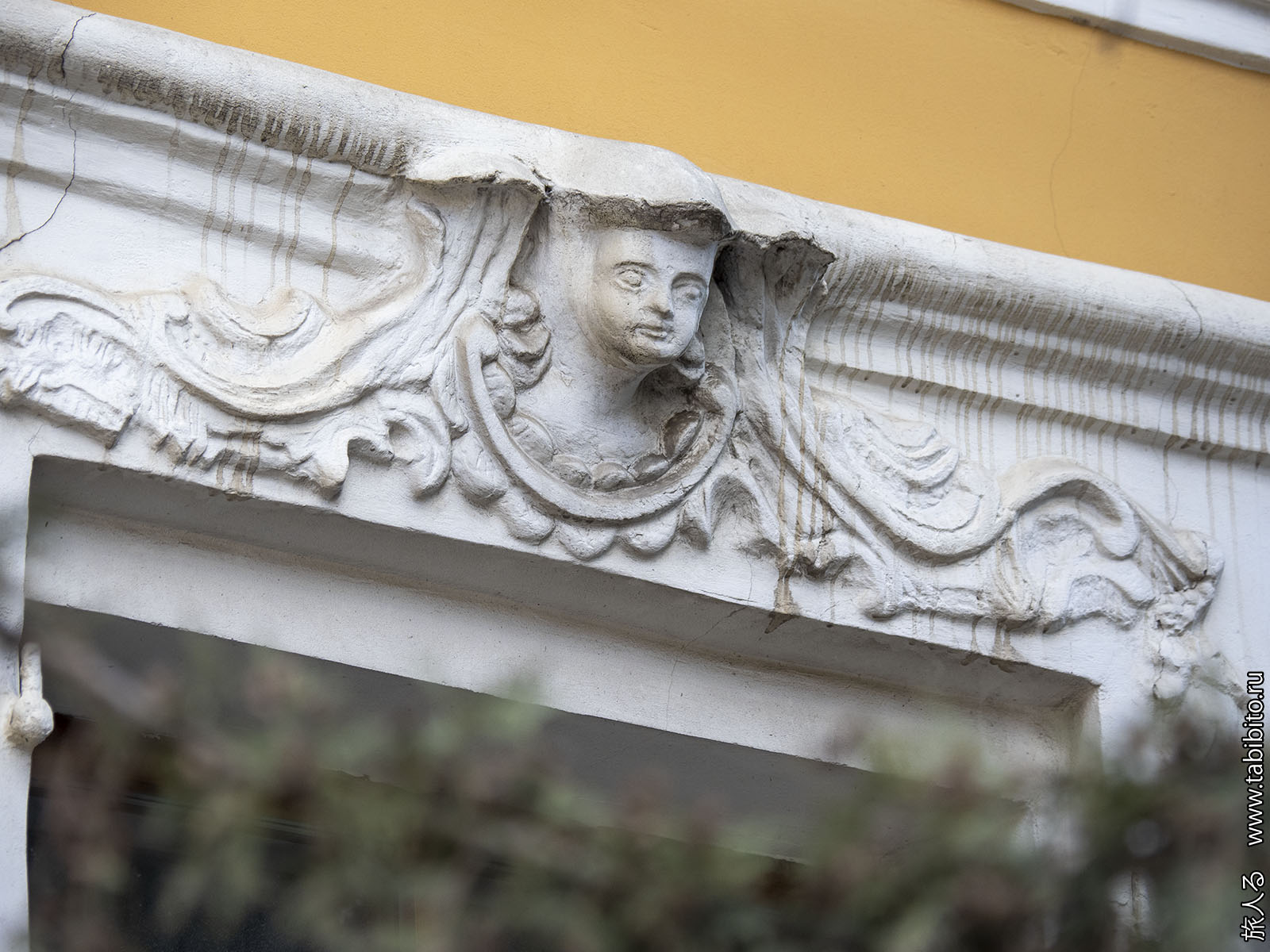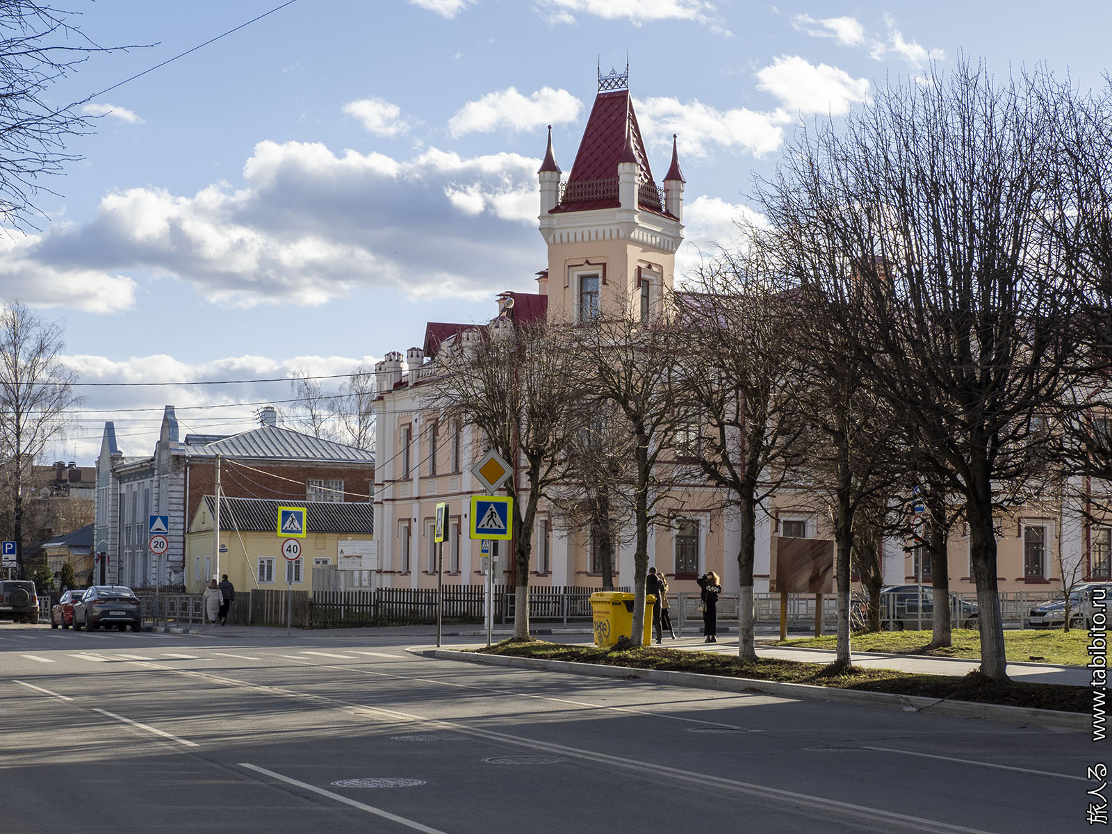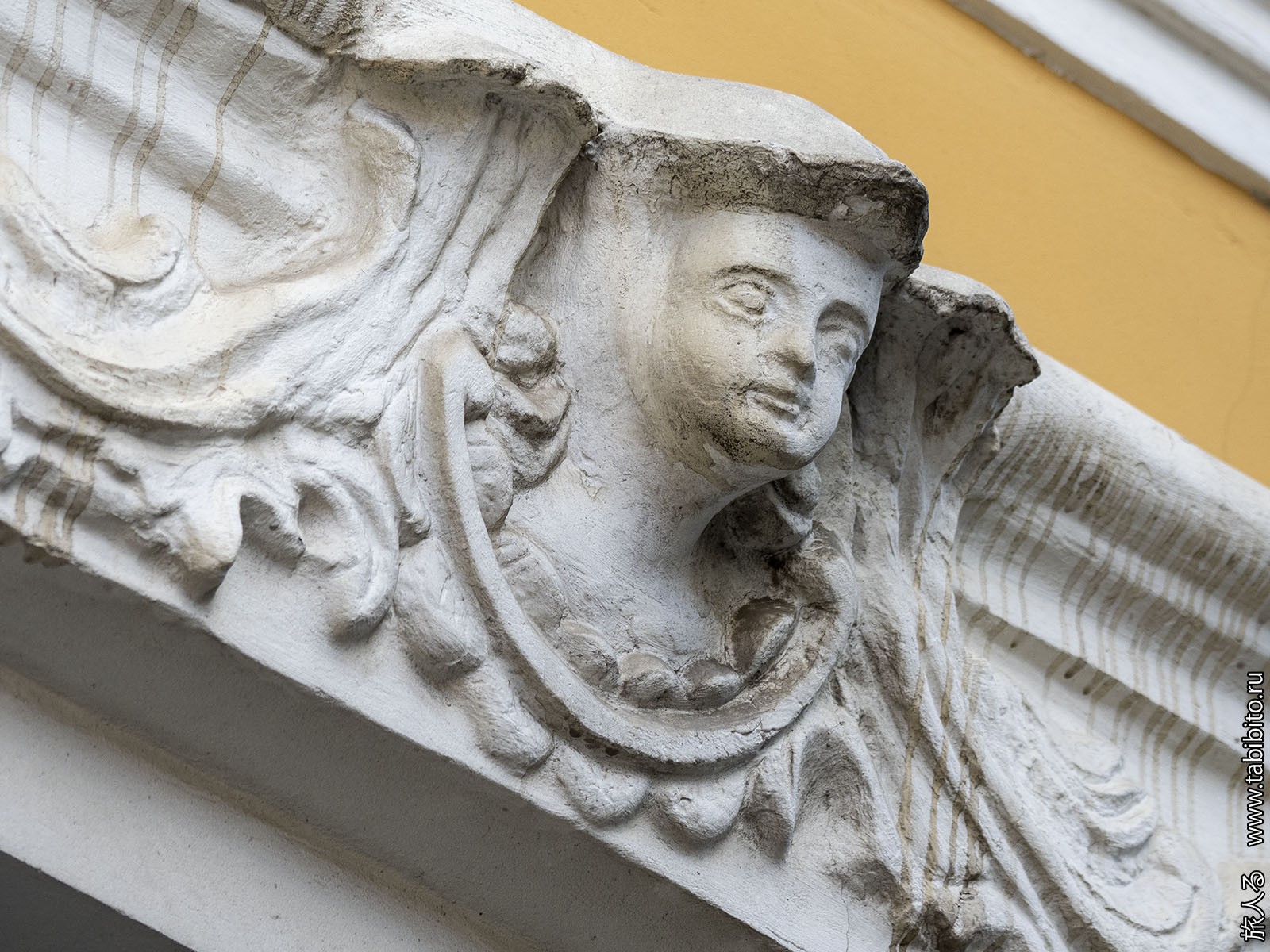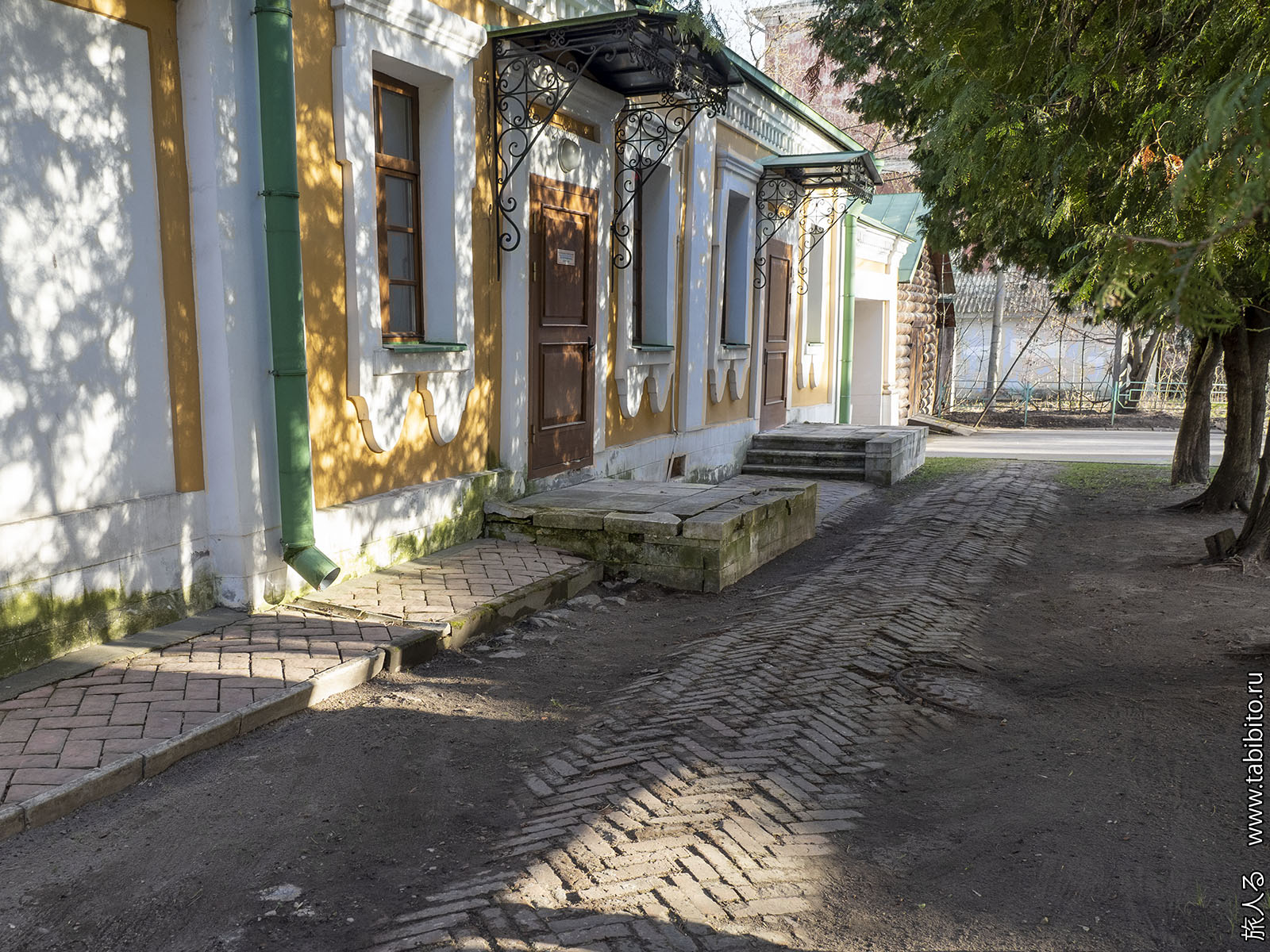 Другая часть музея тверского быта — городская усадьба с маскаронами и клинкерным тротуаром.