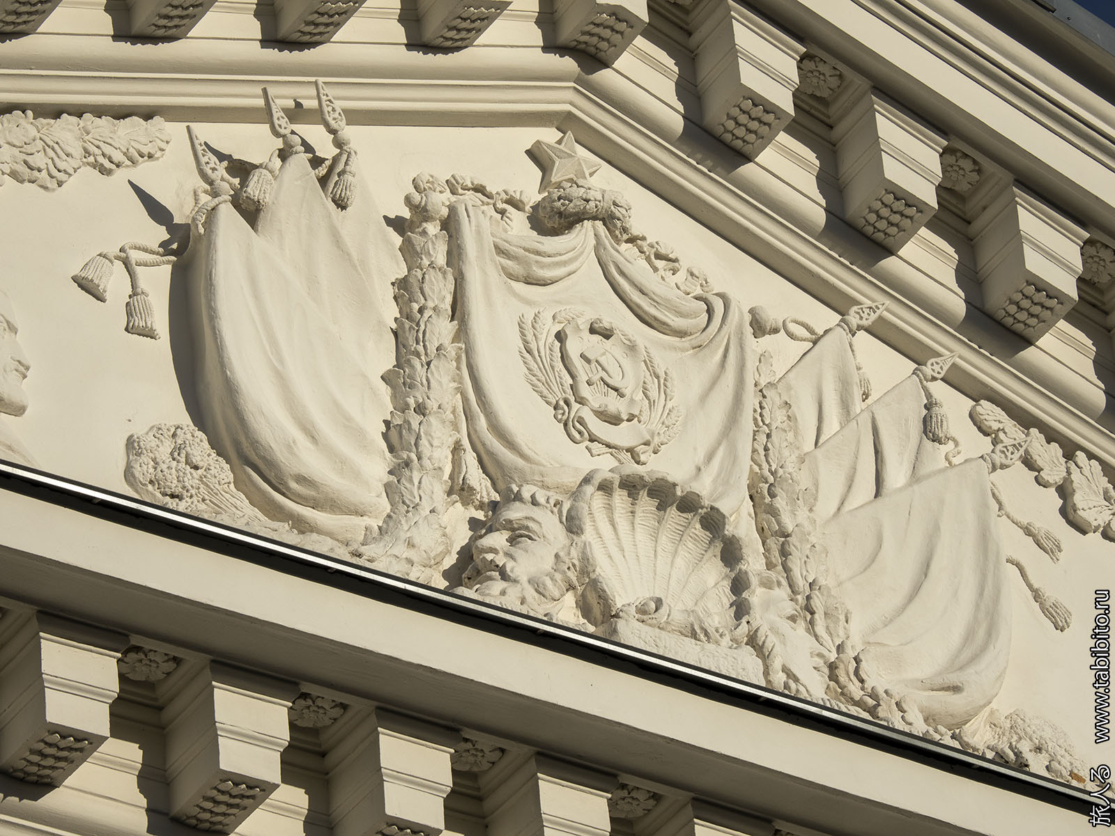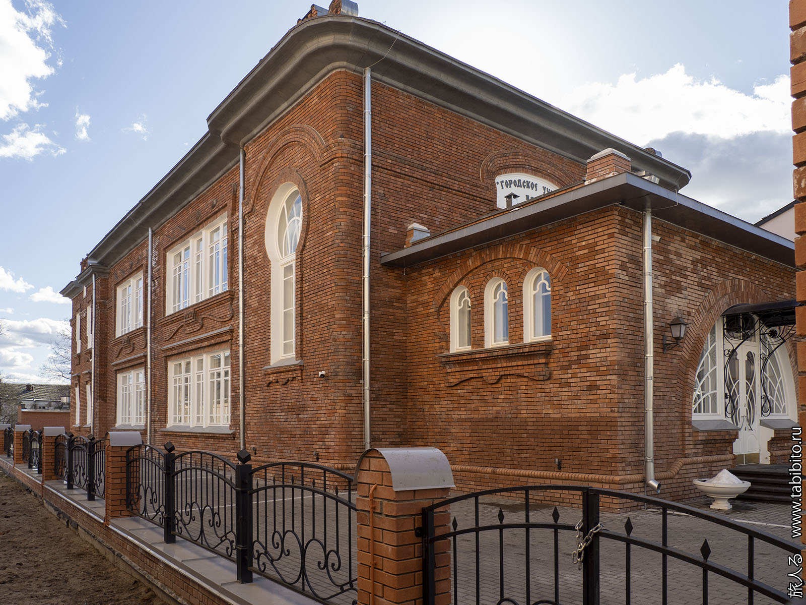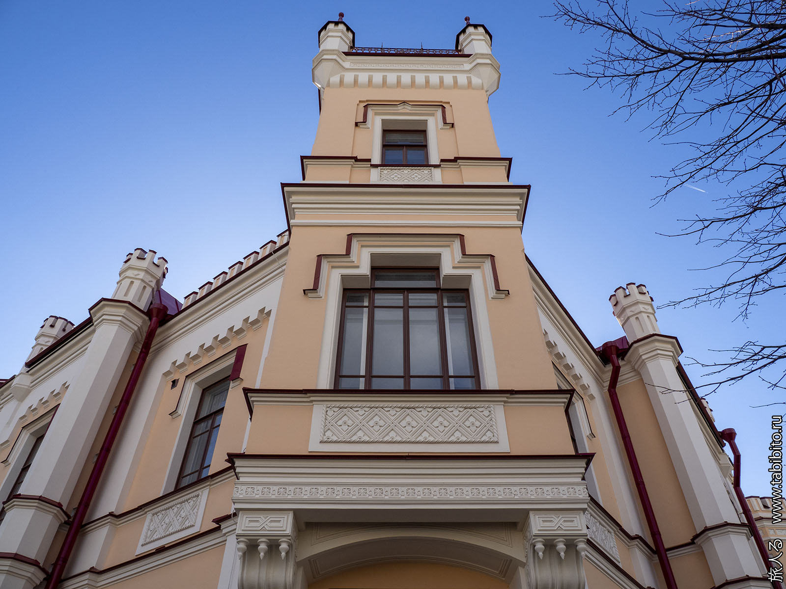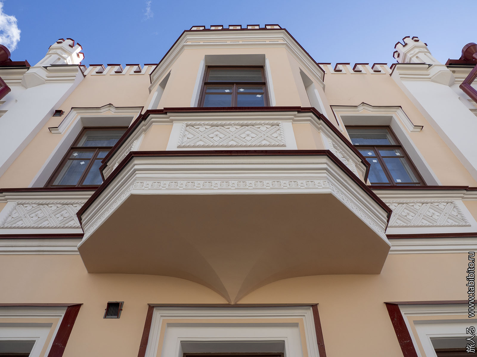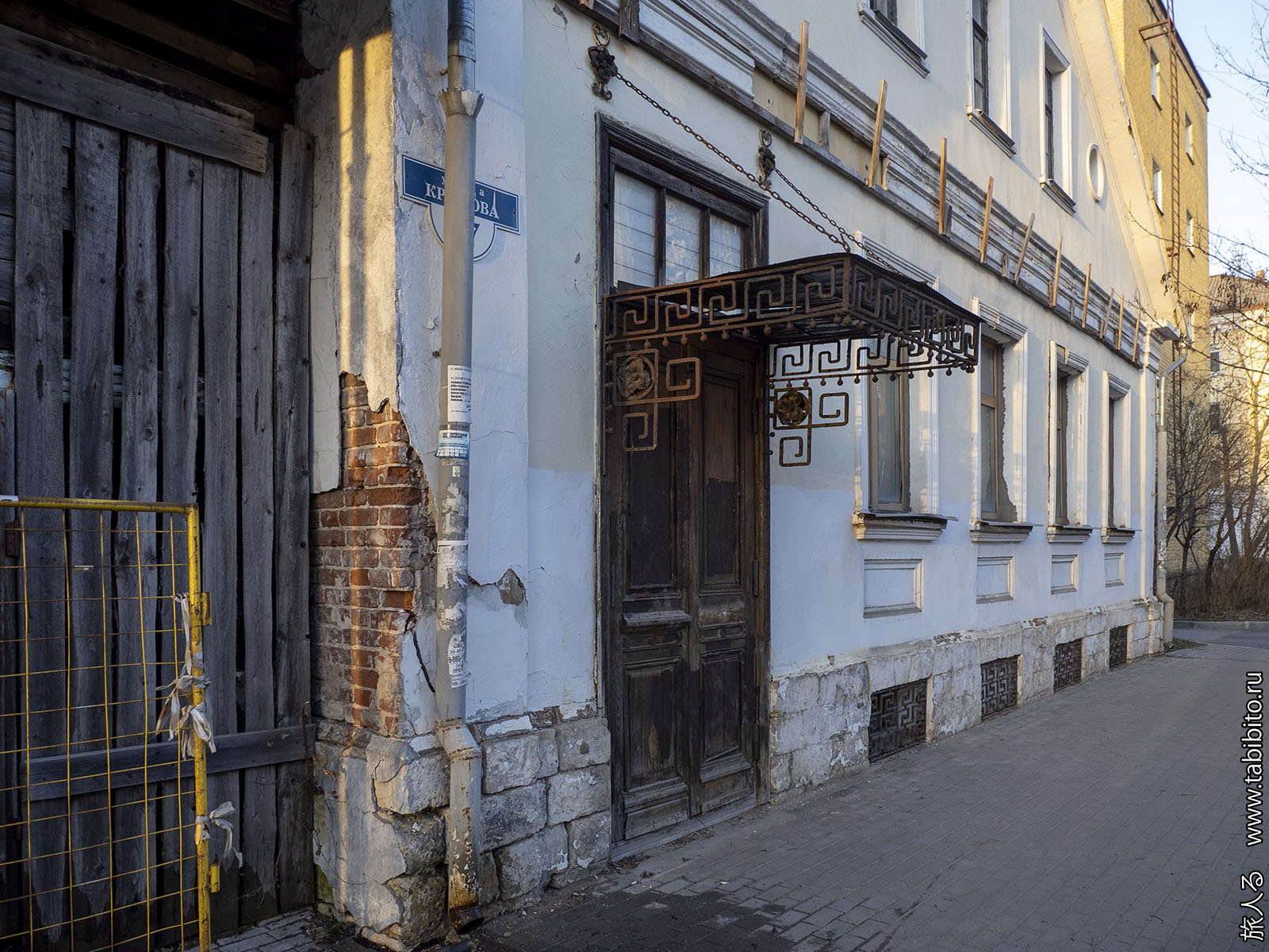 Другая часть музея тверского быта — городская усадьба с маскаронами и клинкерным тротуаром.
