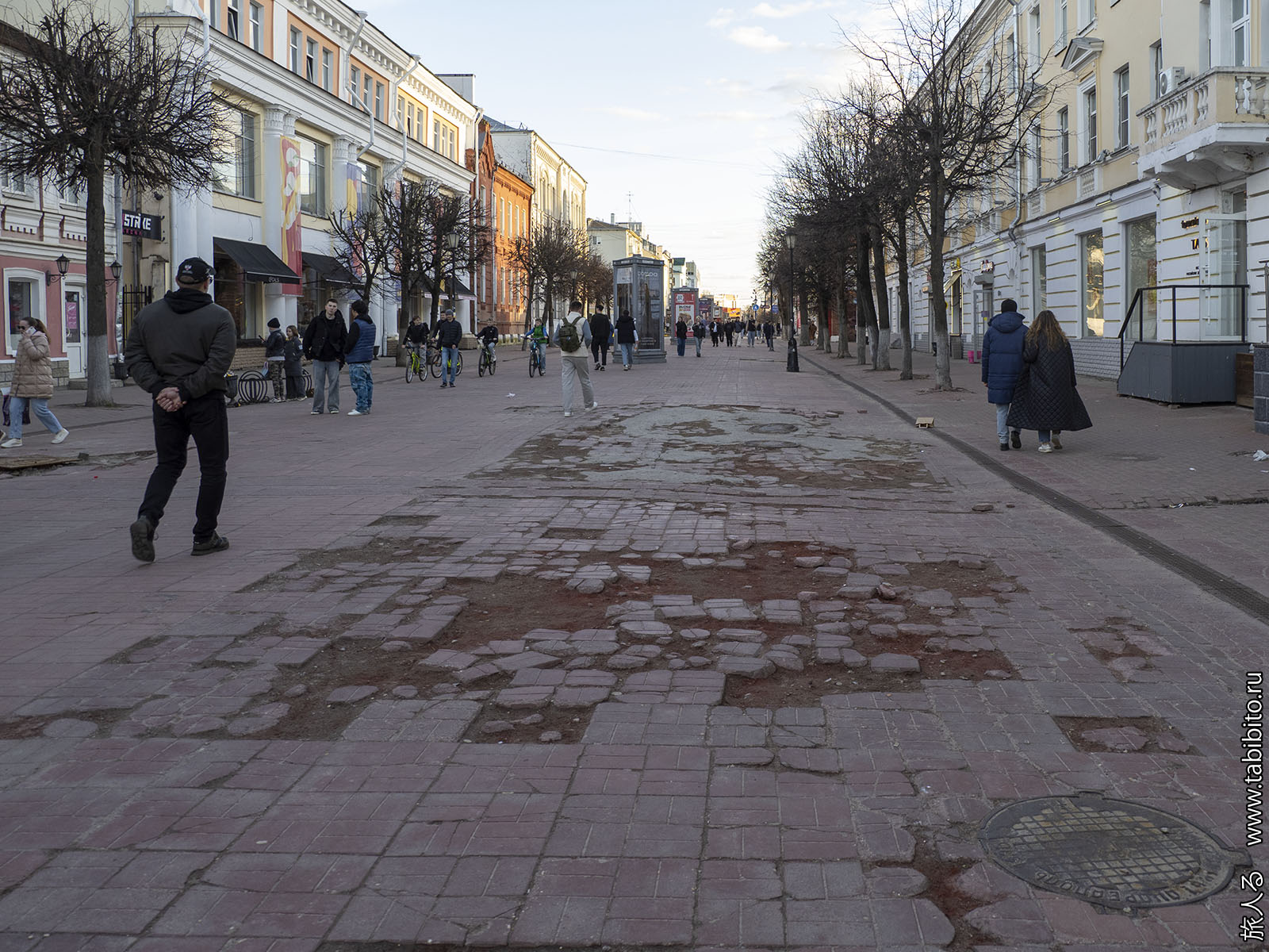 Но вернемся в центр. Пешеходную Трехсвятскую улицу еще чинить и чинить.