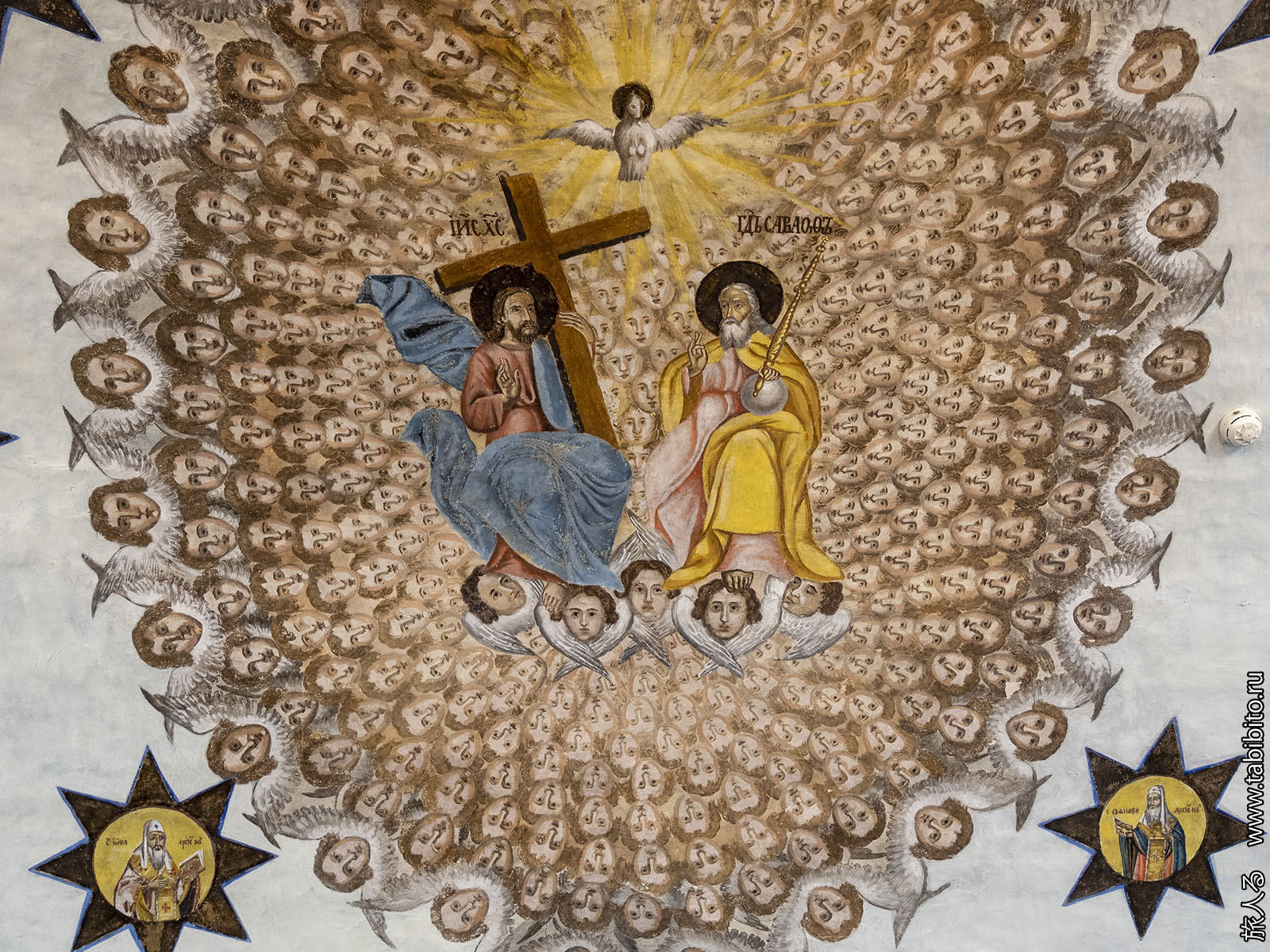 Причем сомнительного качества. Артель, похоже, безобразничала и увековечила себя как минимум в виде Христа и херувима.
