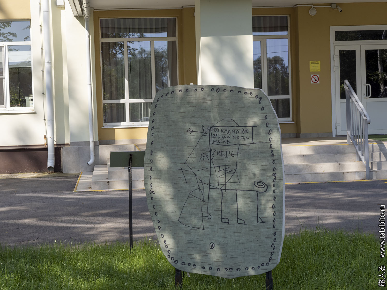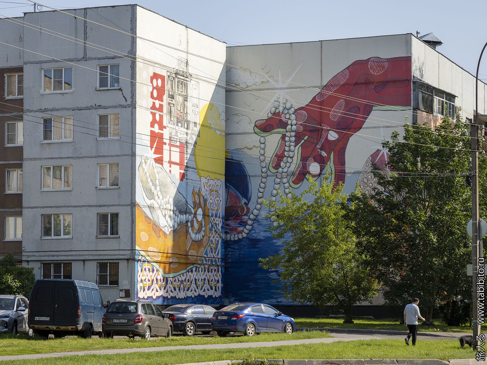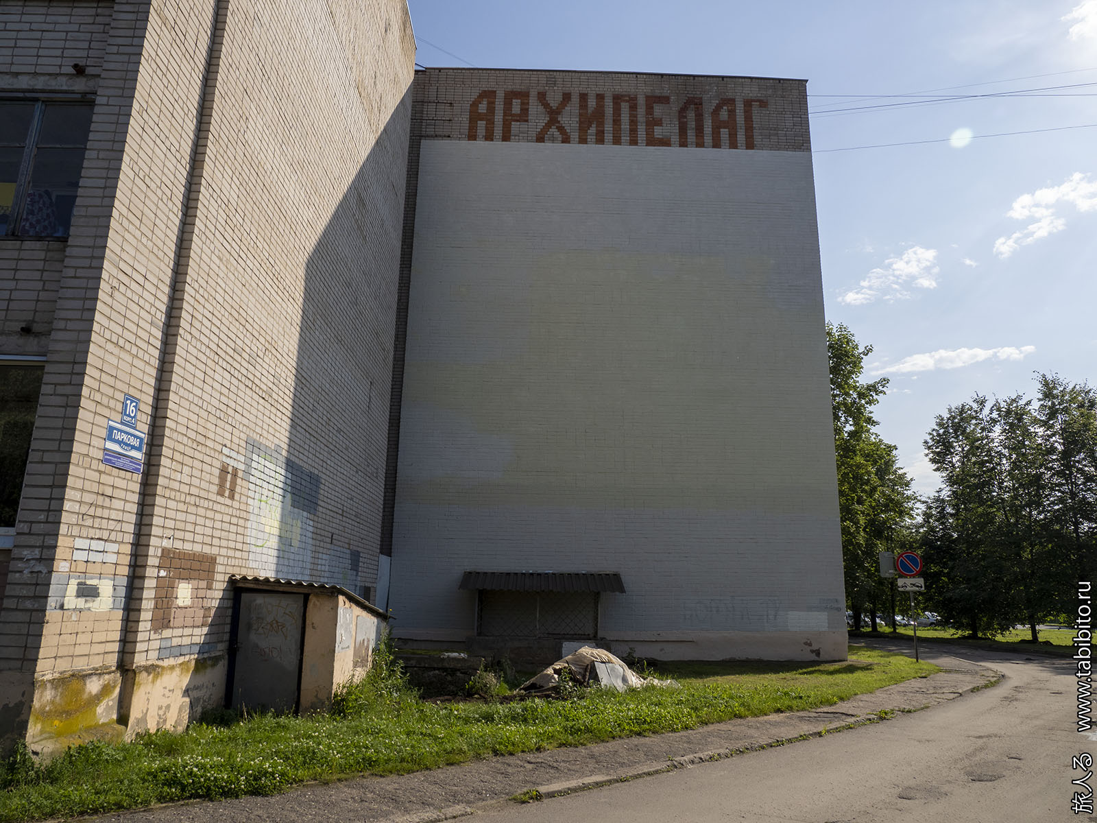 Еще на одном доме на этой улице при постройке в 1993 году выложили необъяснимую надпись АРХИПЕЛАГ. А в 2022 году под ней задумали что-то нарисовать, но либо остановились на этапе грунтовки, либо сразу замазали.
