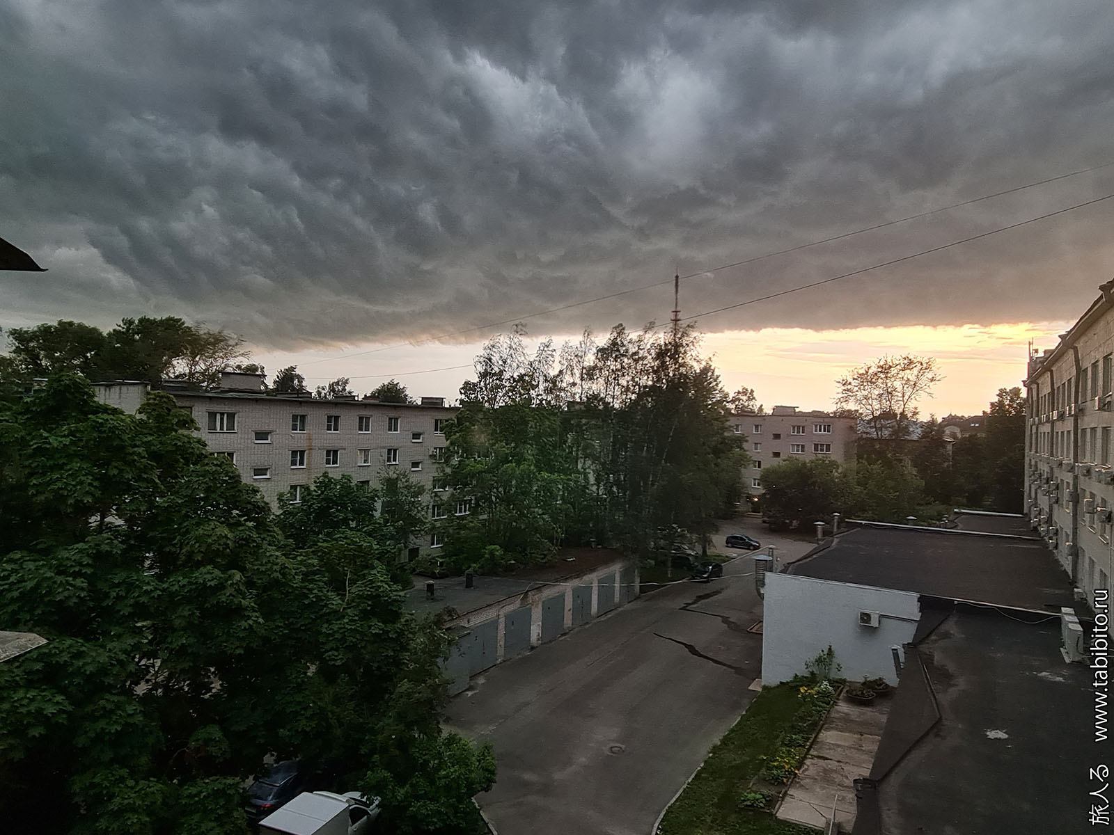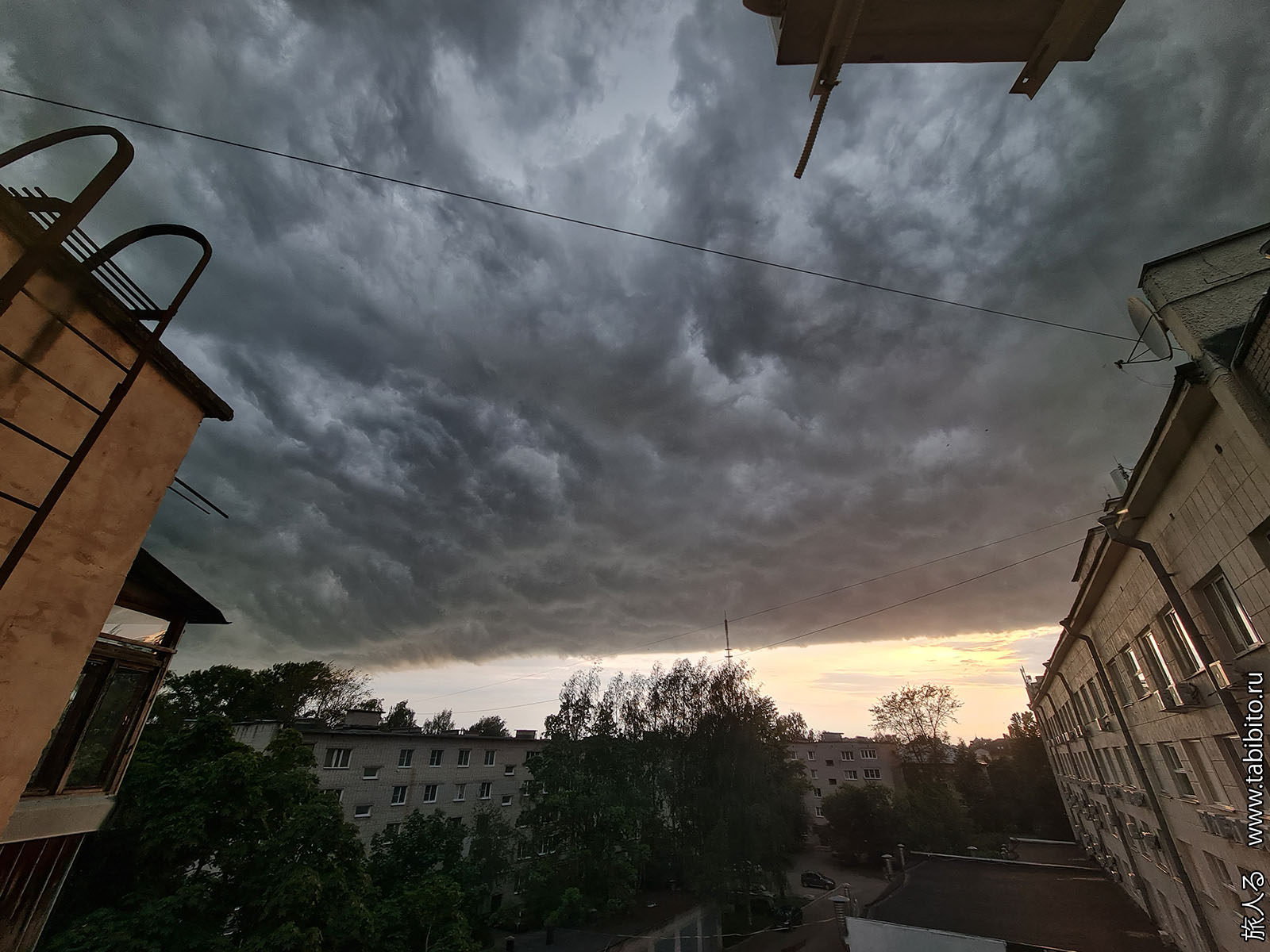 Вид из номера отеля на надвигающийся ураган, который в ночь на 13 июля лишил электроэнергии более 20 тысяч жителей Новгородской области.