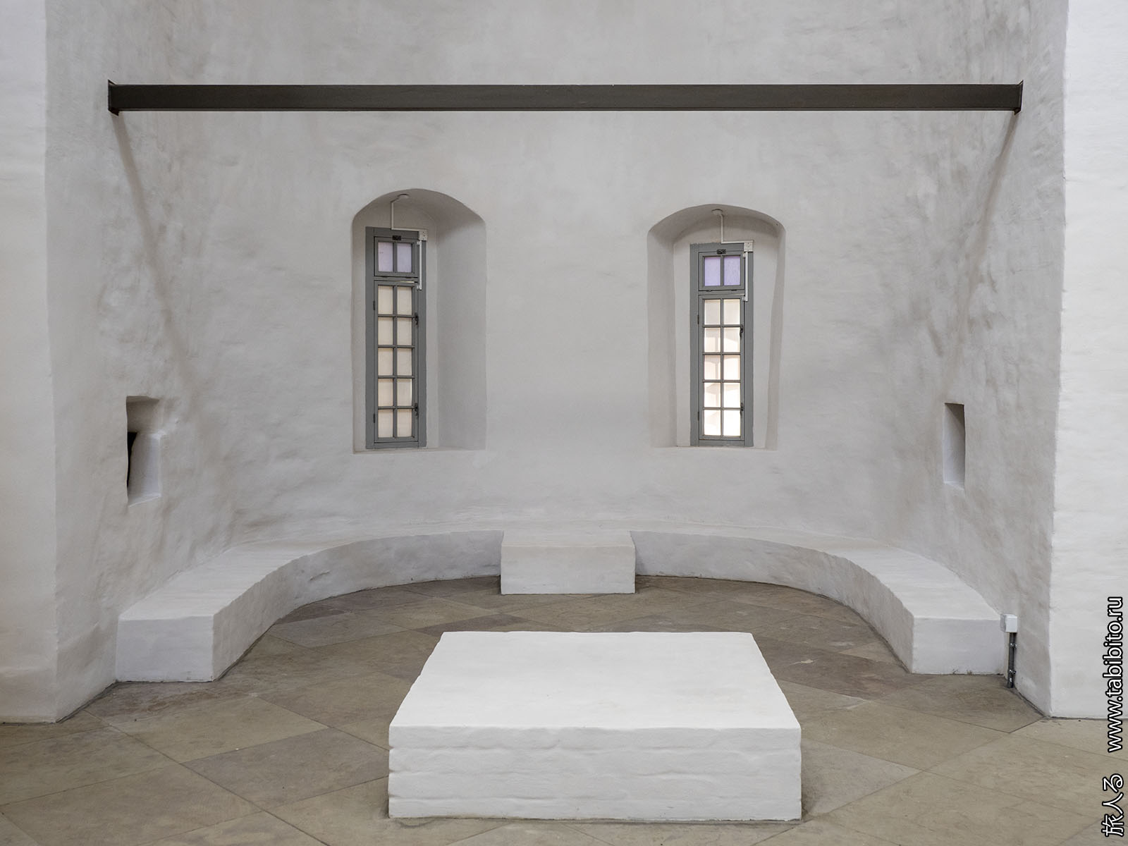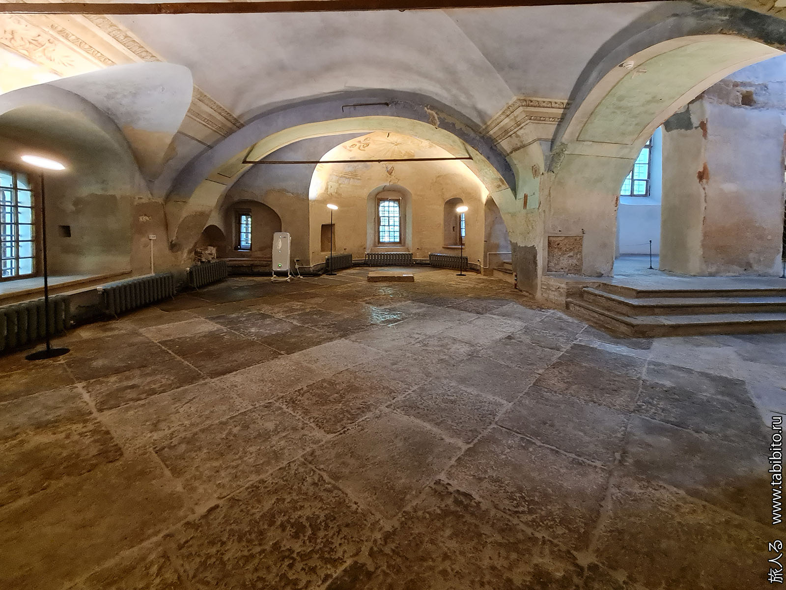 Интерьеров не сохранилось, стены просто побелили.