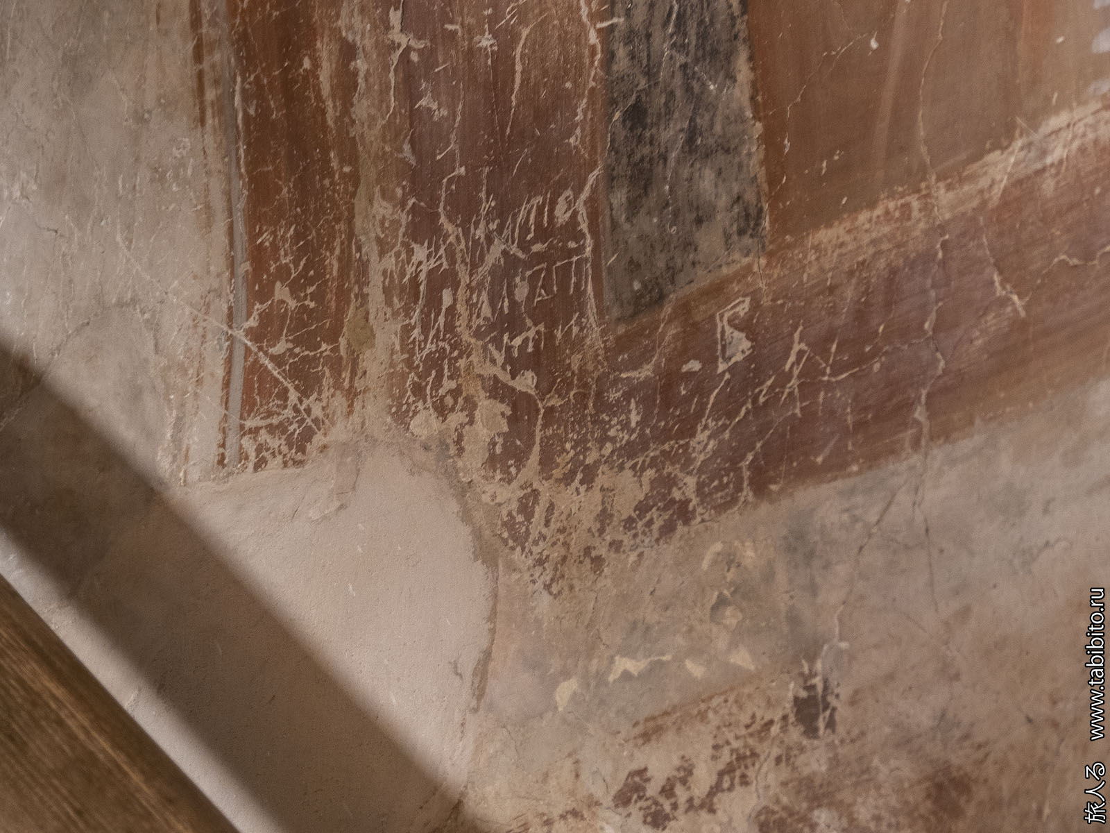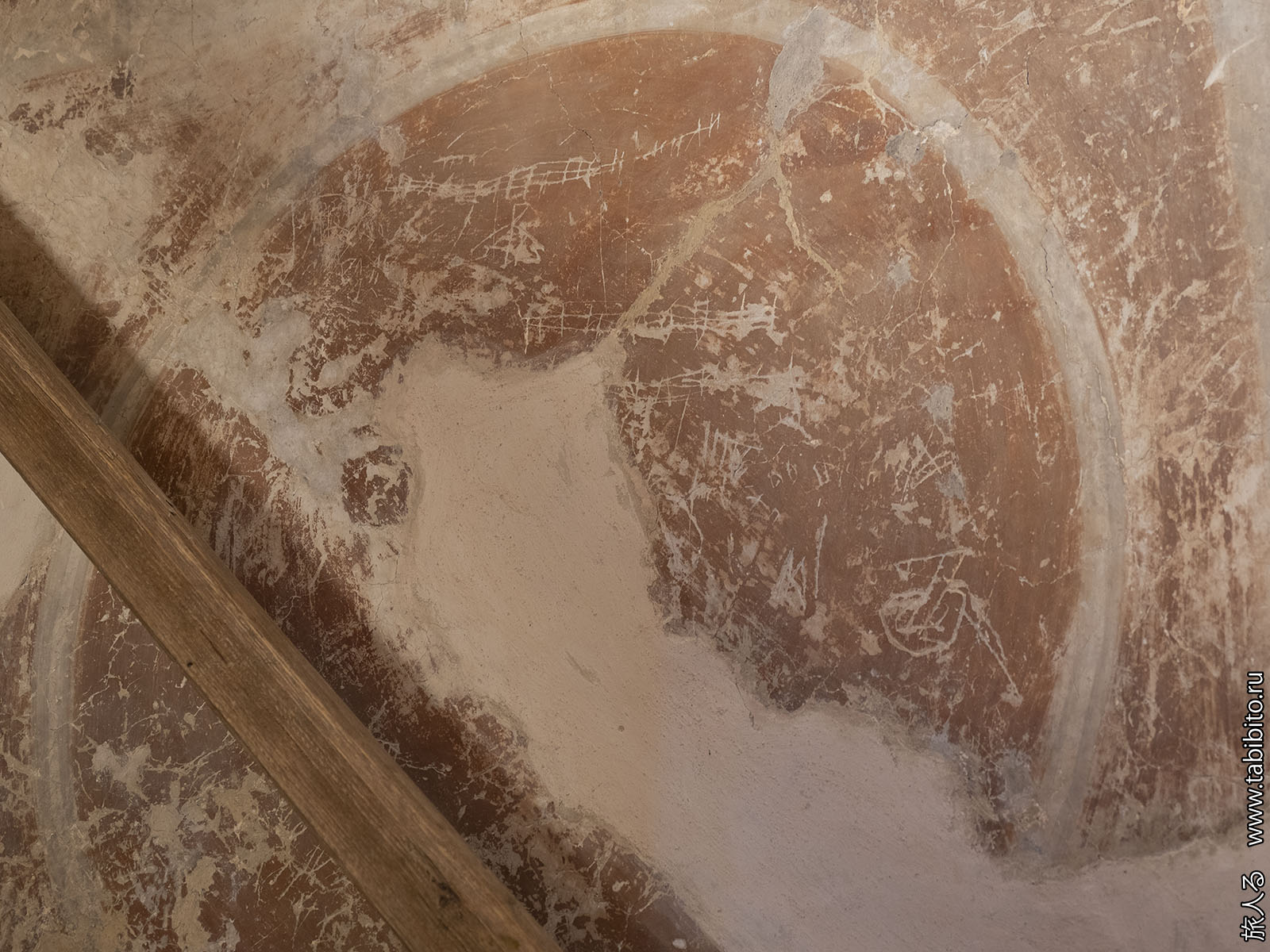 На некоторых росписях сохранился вандализм 600-летней давности.