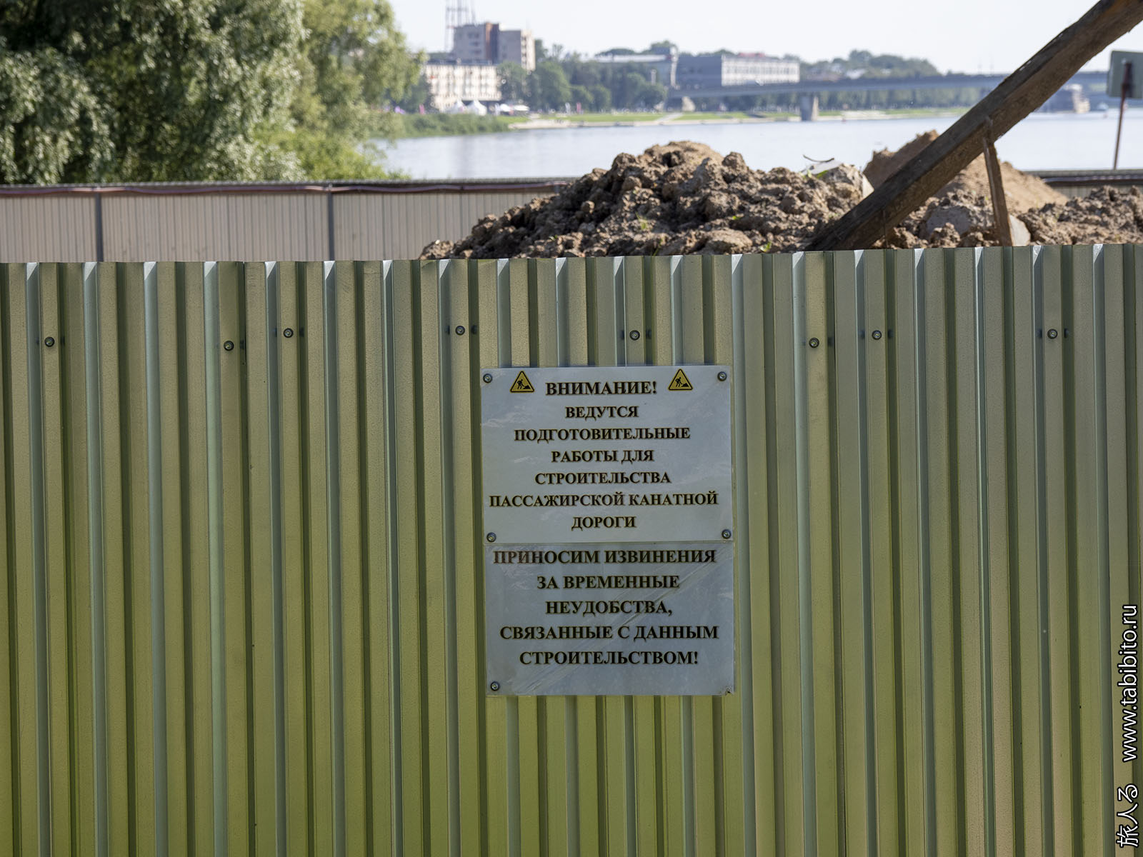 Канатная дорога через Волхов, которая когда-нибудь соединит корпуса Новгородского госуниверситета. Строится, но очень неспешно.