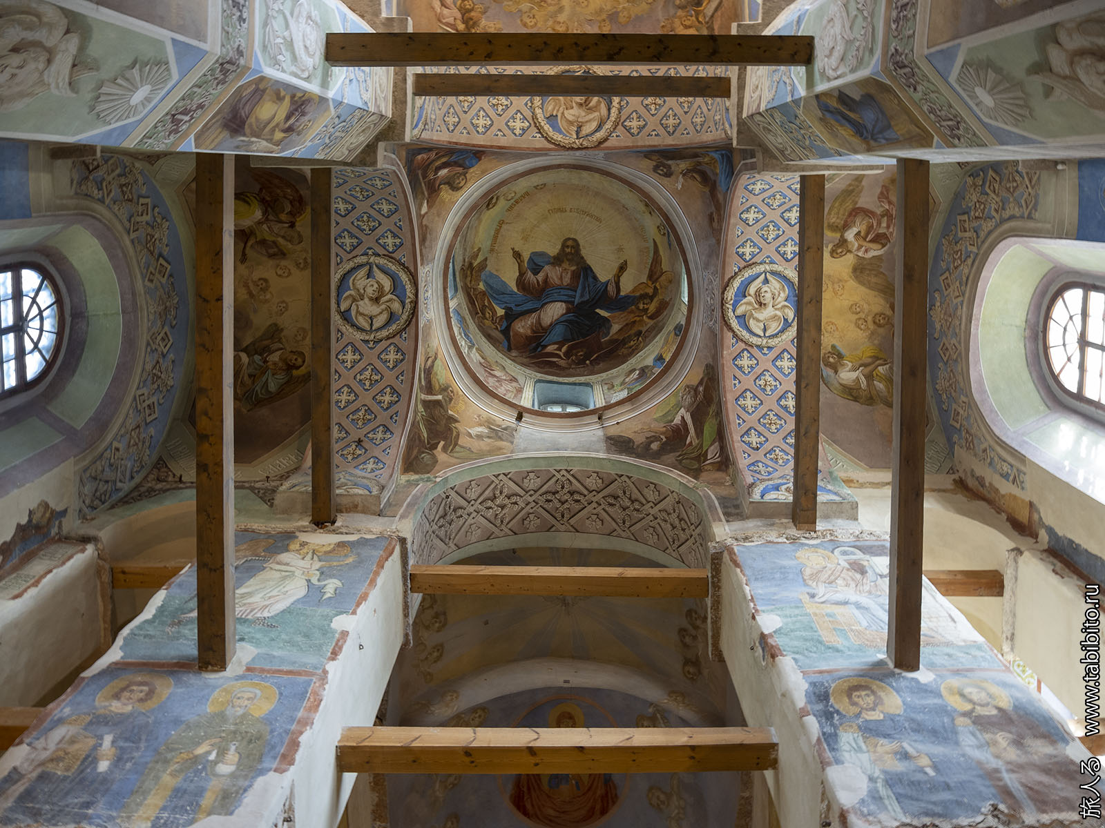 Самые интересные росписи — в барабане. Туда даже построен очень стремный мостик с хоров, но простых смертных на него не пускают.