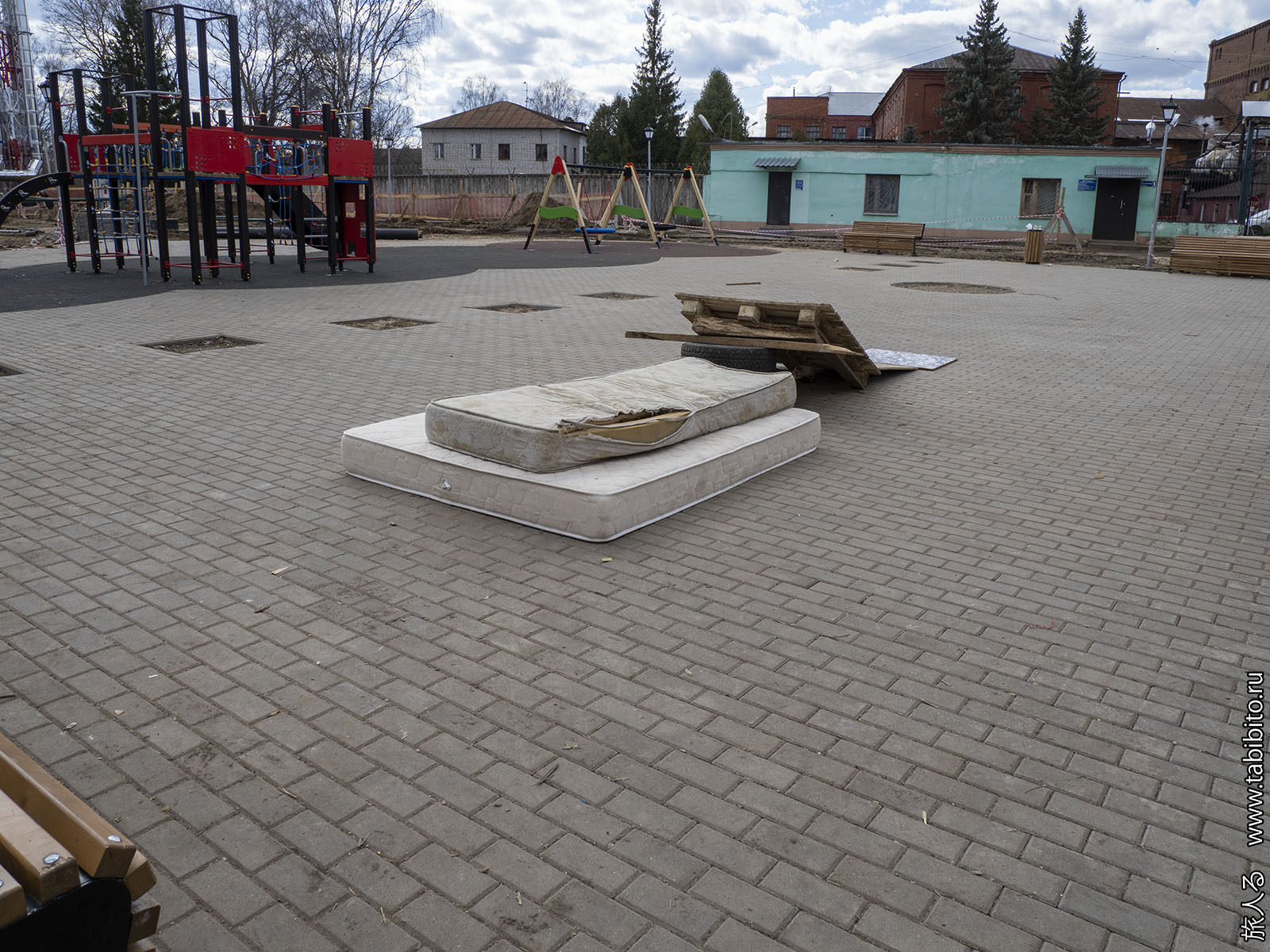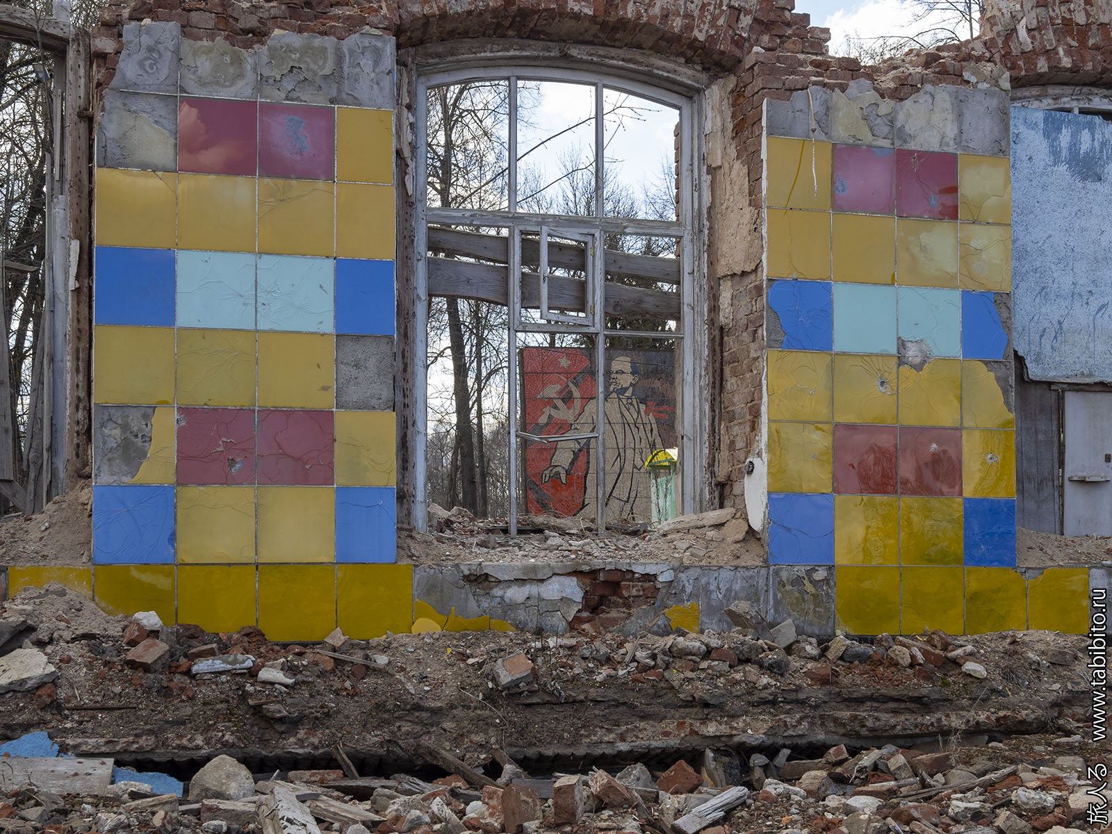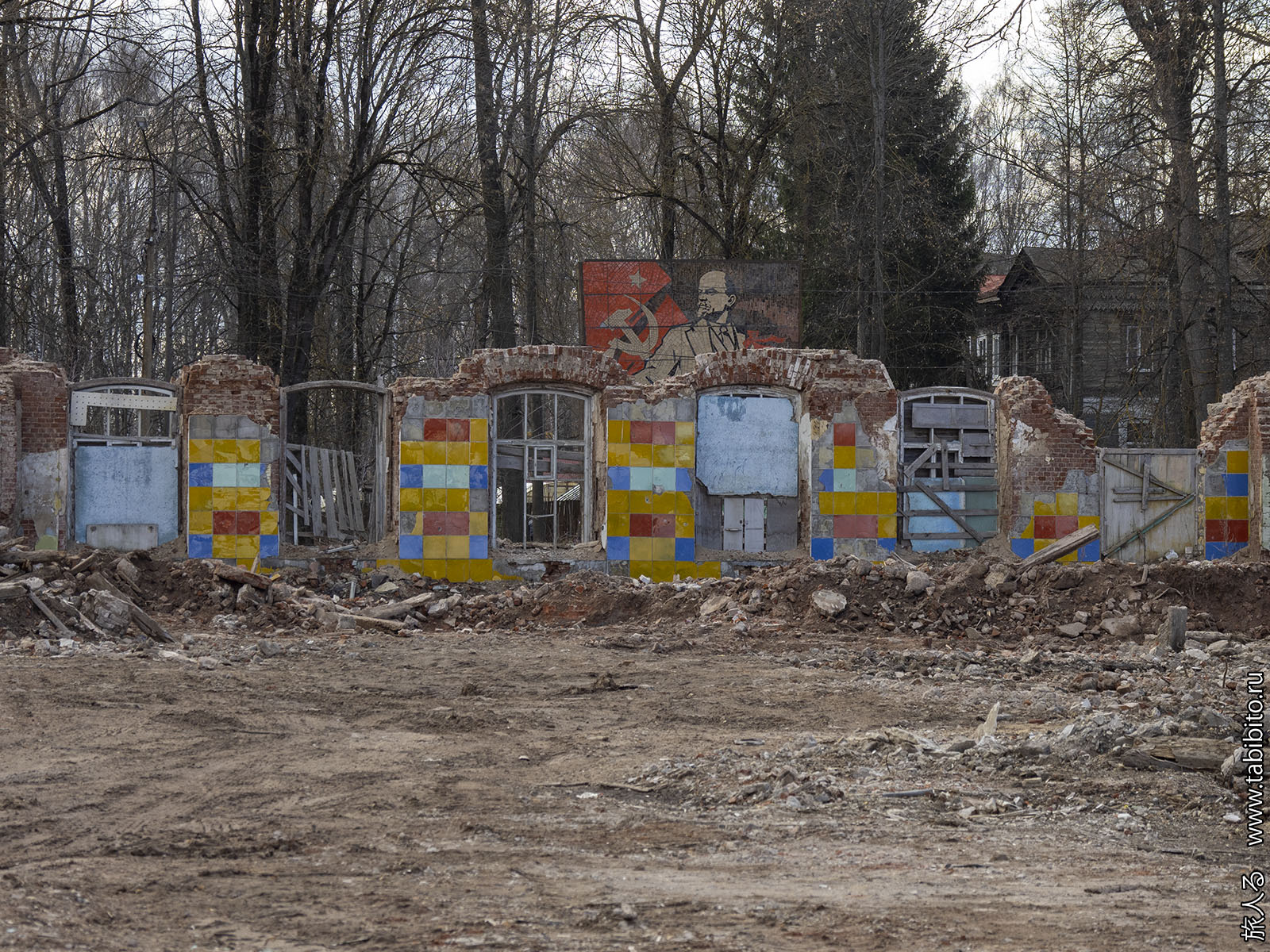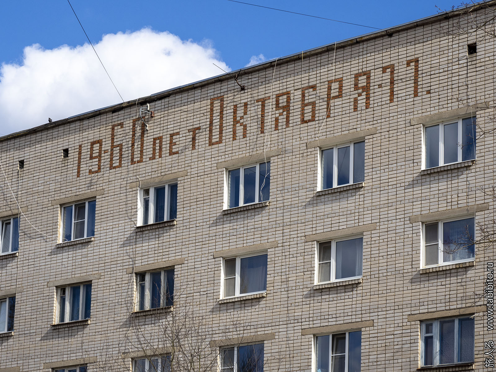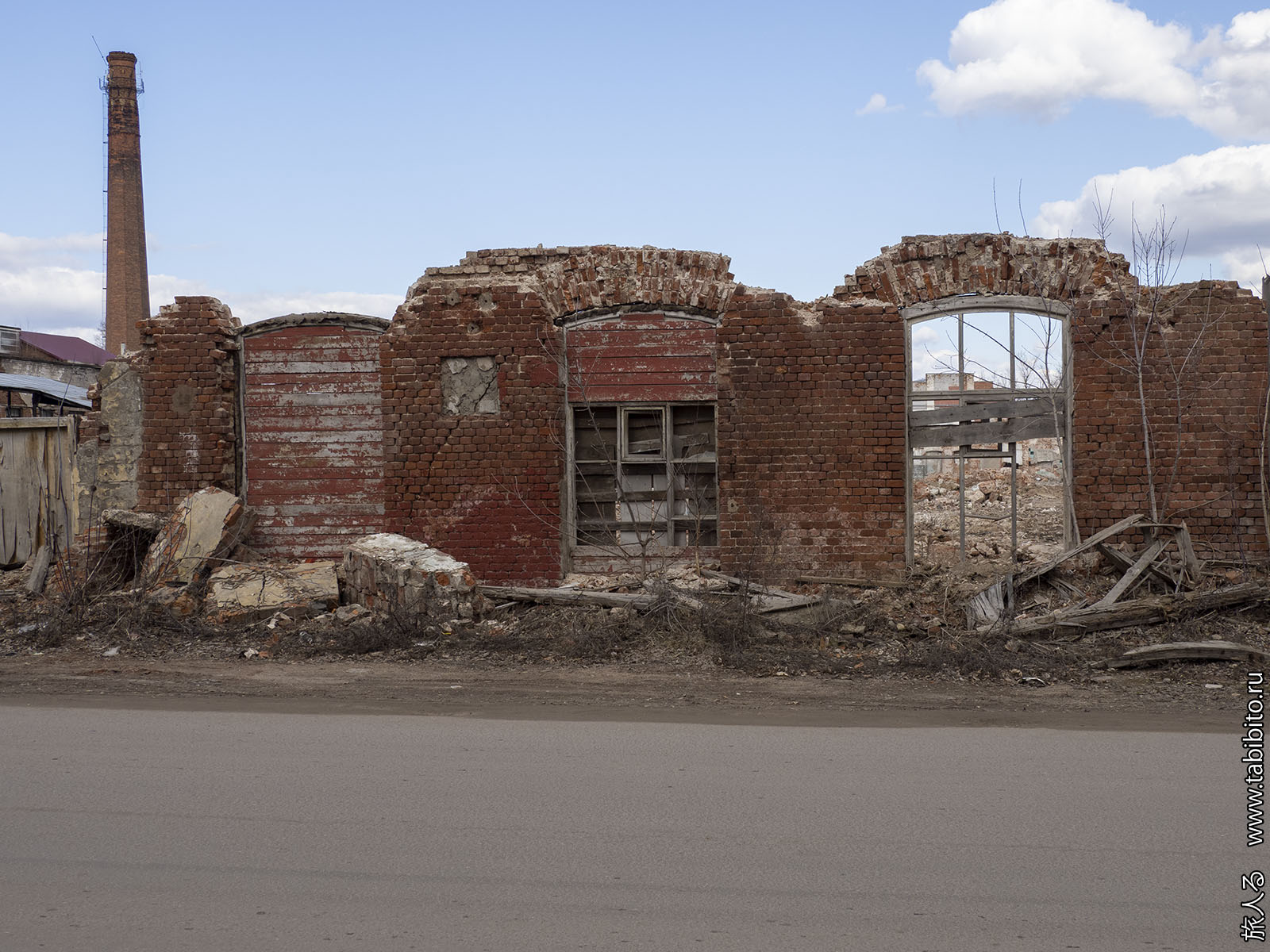 Жилые дома вокруг фабрики догнивают вместе с табличками про образцовое содержание.