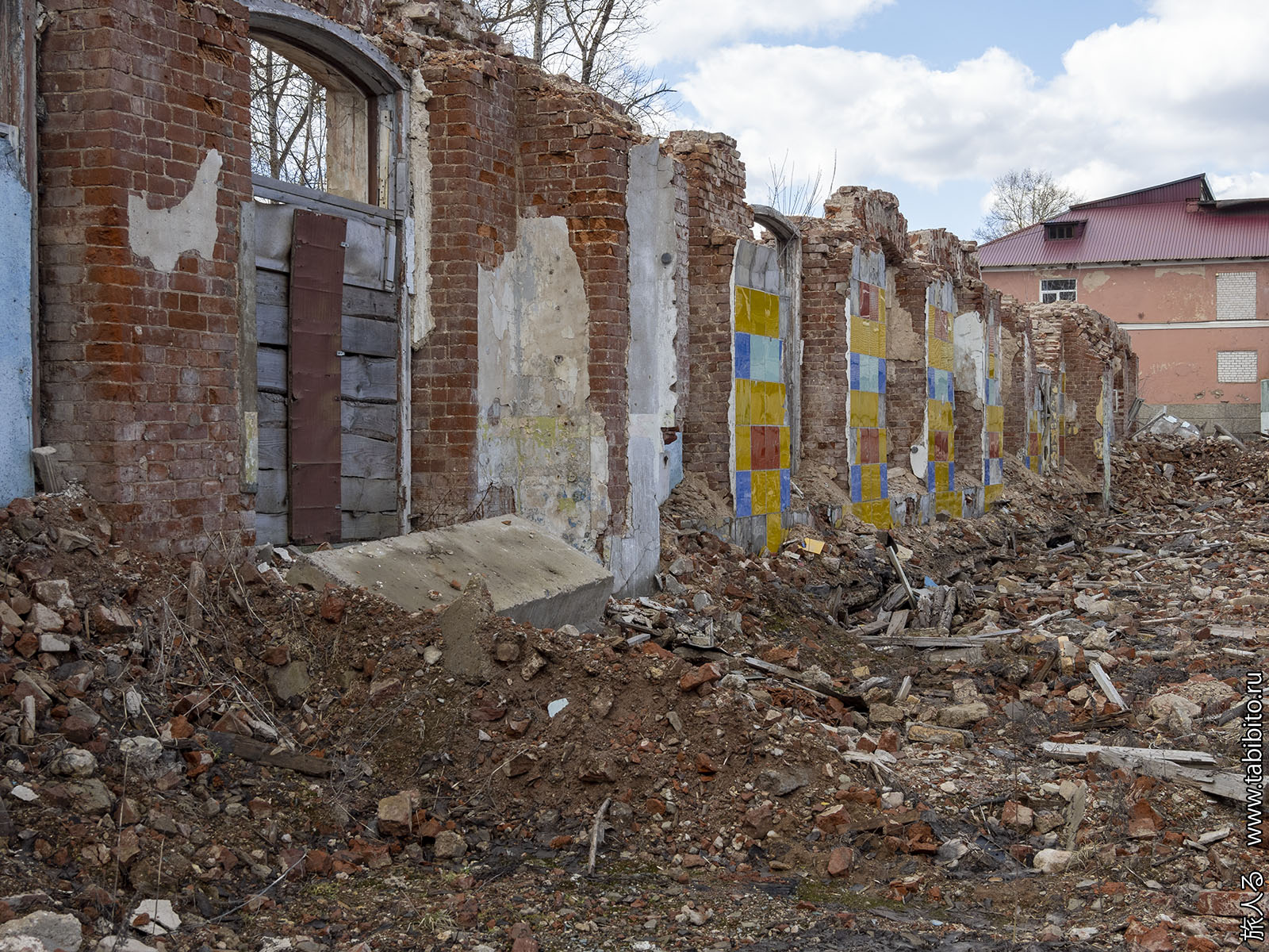 Пожалуй, самая недооцененная часть Вышнего Волочка — за железной дорогой. Изначально она формировалась вокруг фабрики Рябушинских. Фабрика жива, выпускает даже какие-то полотенца, но исторические корпуса выглядят необитаемо.