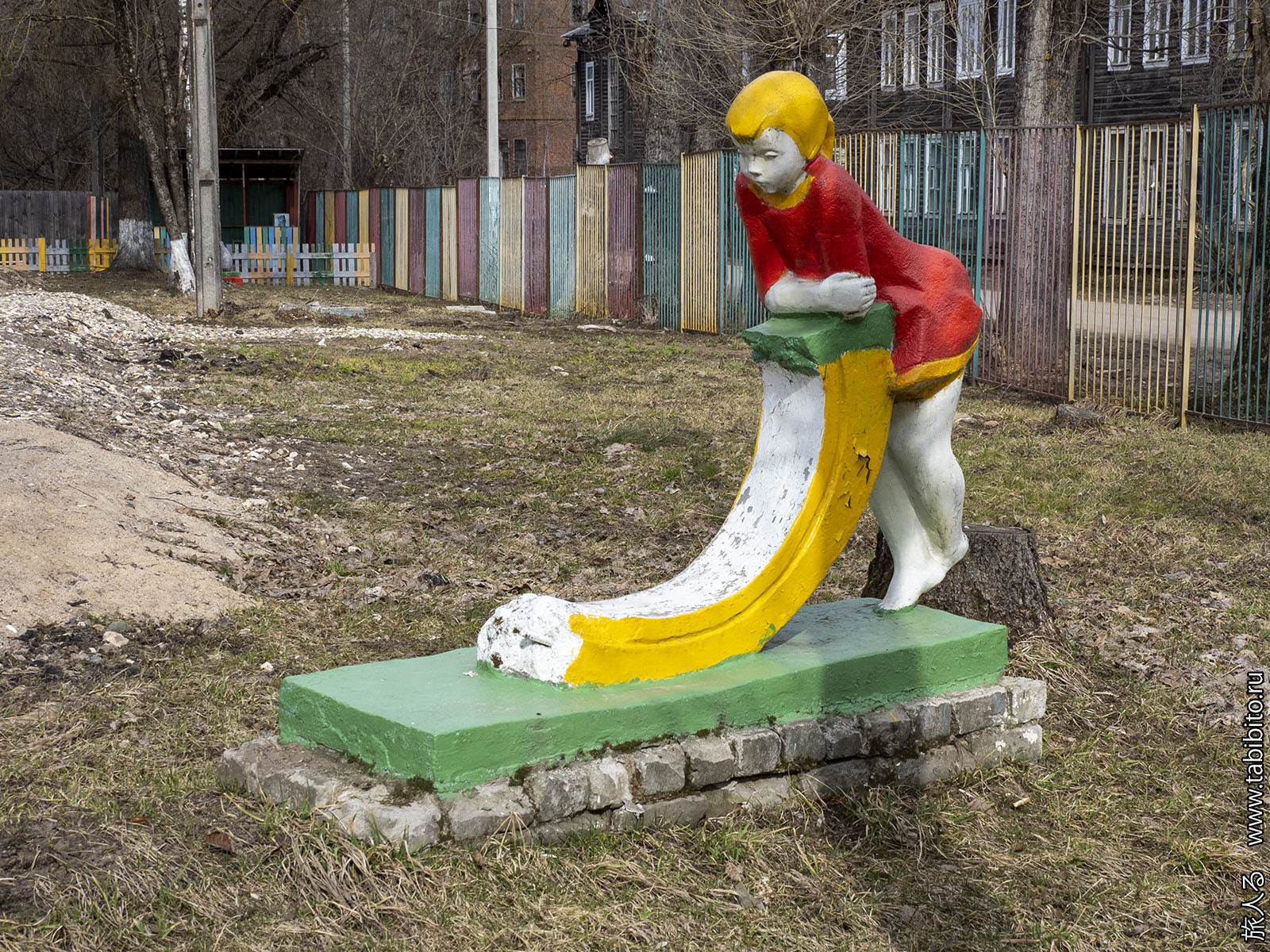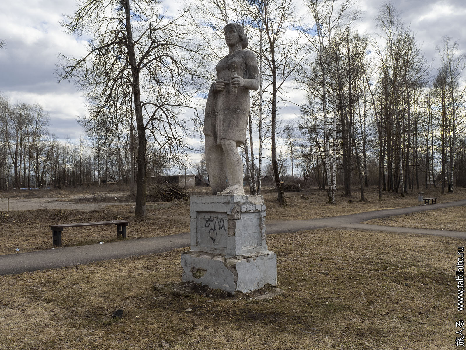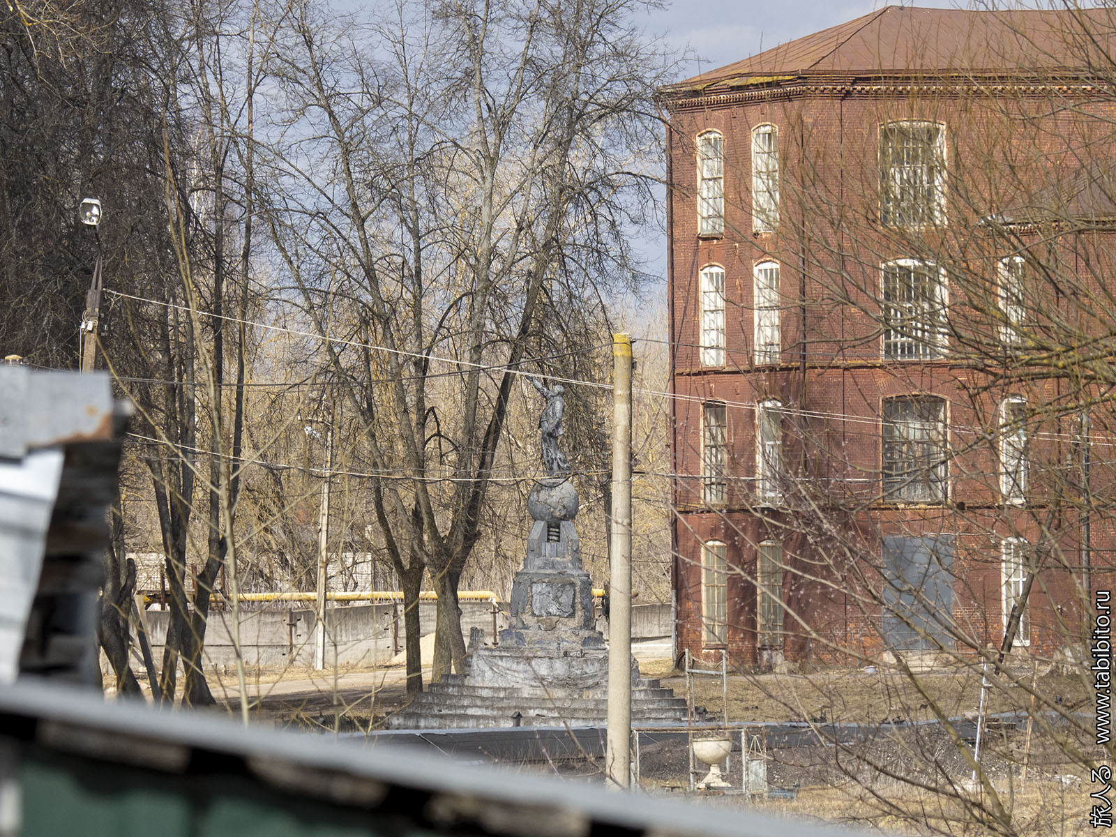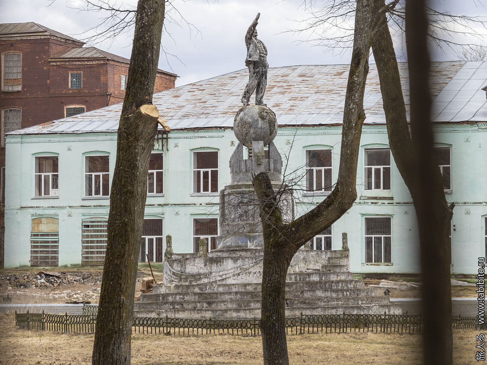 В 2016 году запечатлел громадный бруталистский ДК рядом с фабрикой. В 2021 году его снесли, пообещав создать на его месте «комфортную территорию для граждан». За спиной у статуи — та самая территория.