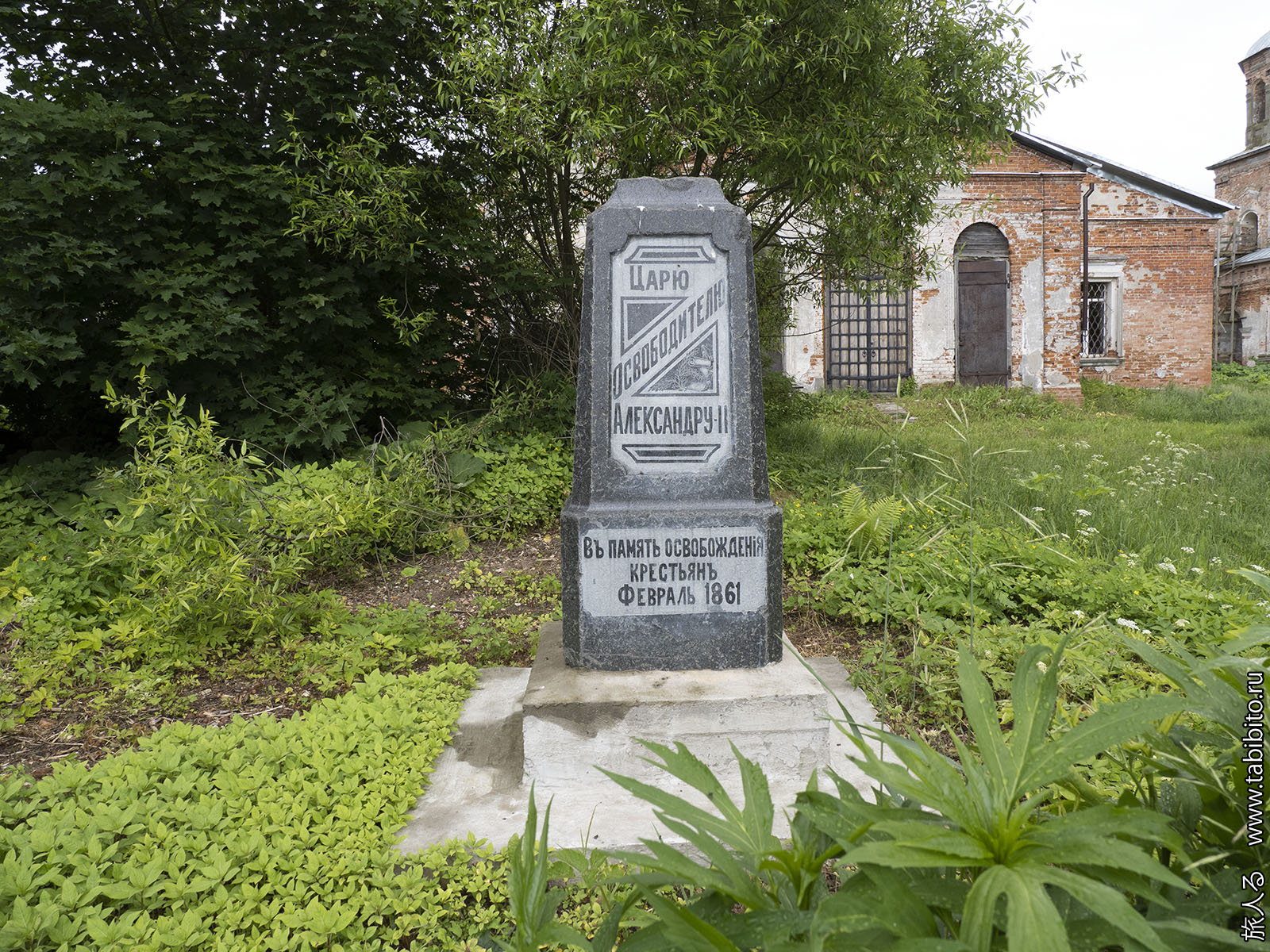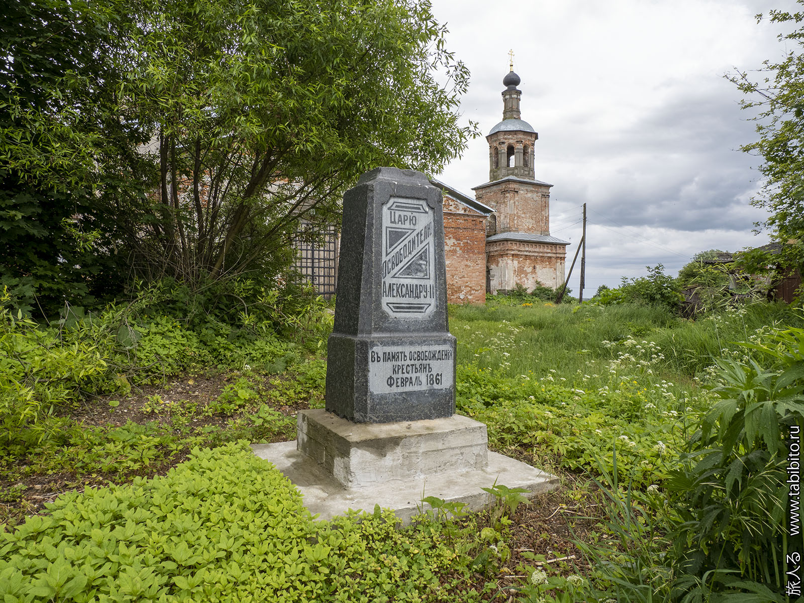 И самый неожиданный артефакт — подлинный памятник Z-царю освободителю Александру II. После революции с него скрутили бронзовый бюст, а постамент, изготовленный в Рыбинске в мастерской А. М. Введенского, выбросили в кусты рядом с храмом. В 2020 году постамент нашли и вернули на место.